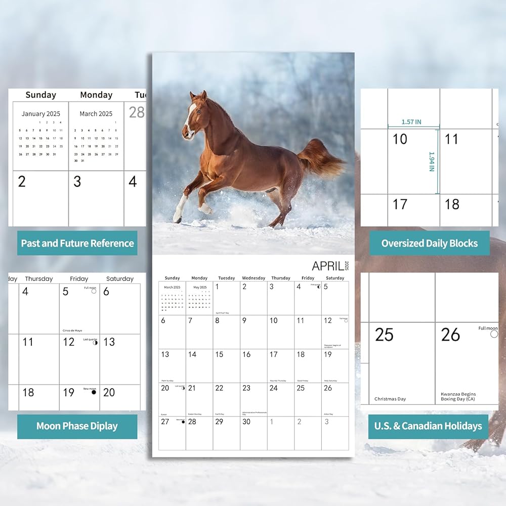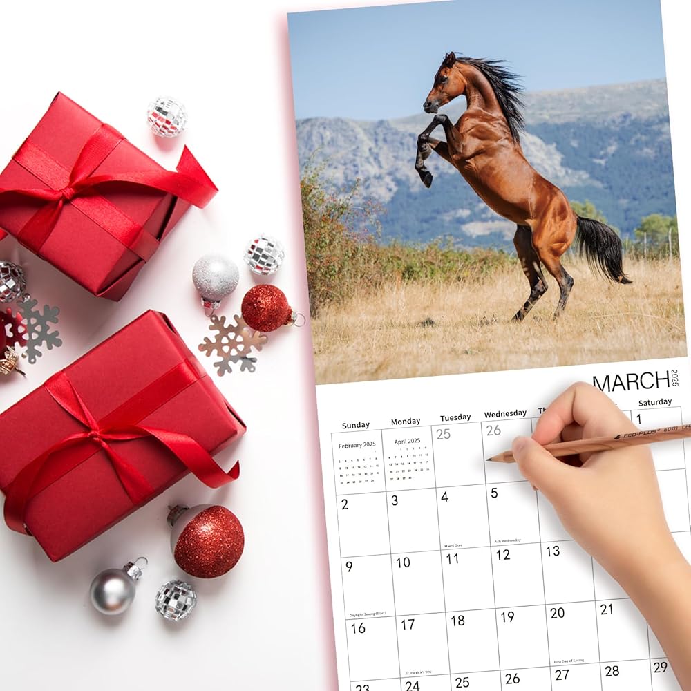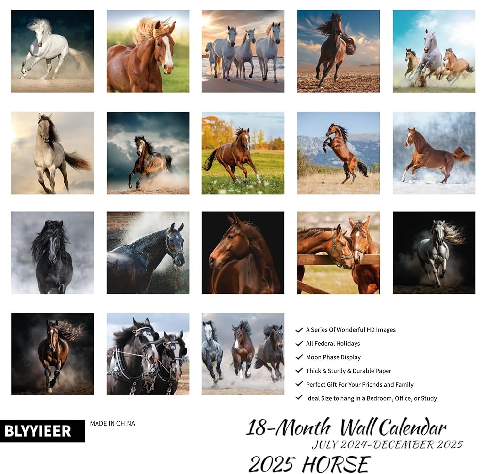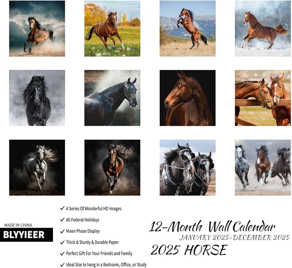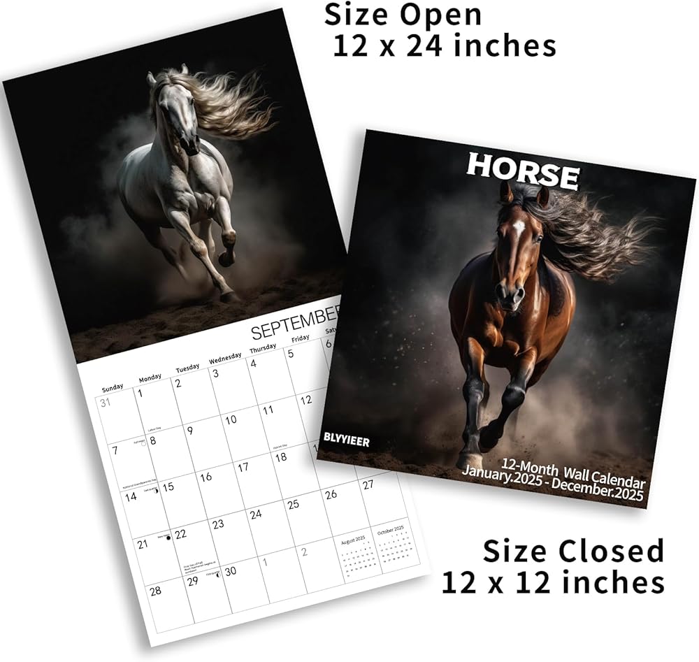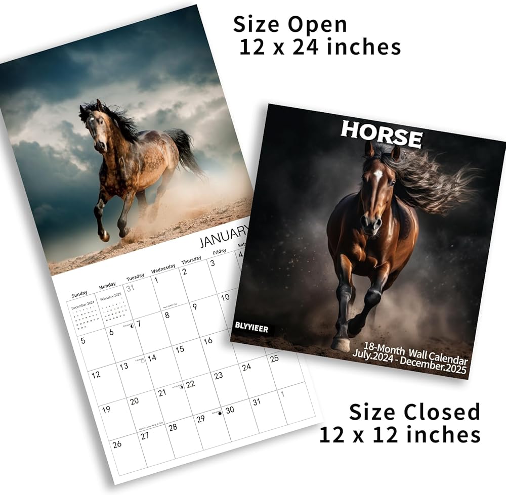 【Horse expression moment】BLYYIEER handpicked high definition and graceful photos, only the best. Our Horse Calendar 2025 is filled with 18 months of Horse expression moment. BLYYIEER square nature wall calendar simply looks so beautiful no matter it hangs at home or in the office.