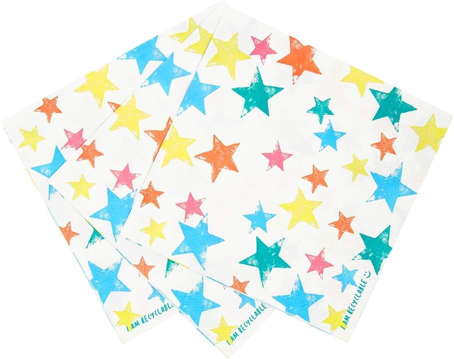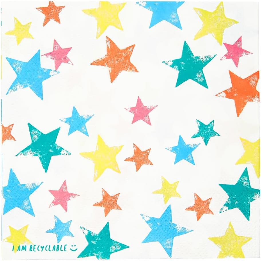 Star Themed Birthday Party Napkins For Kids or Adults | Colorful Paper Serviettes, Disposable Recyclable Tableware, Eco-Friendly | Unisex, For Decoupage, Garden Picnic, BBQ Pack of 20