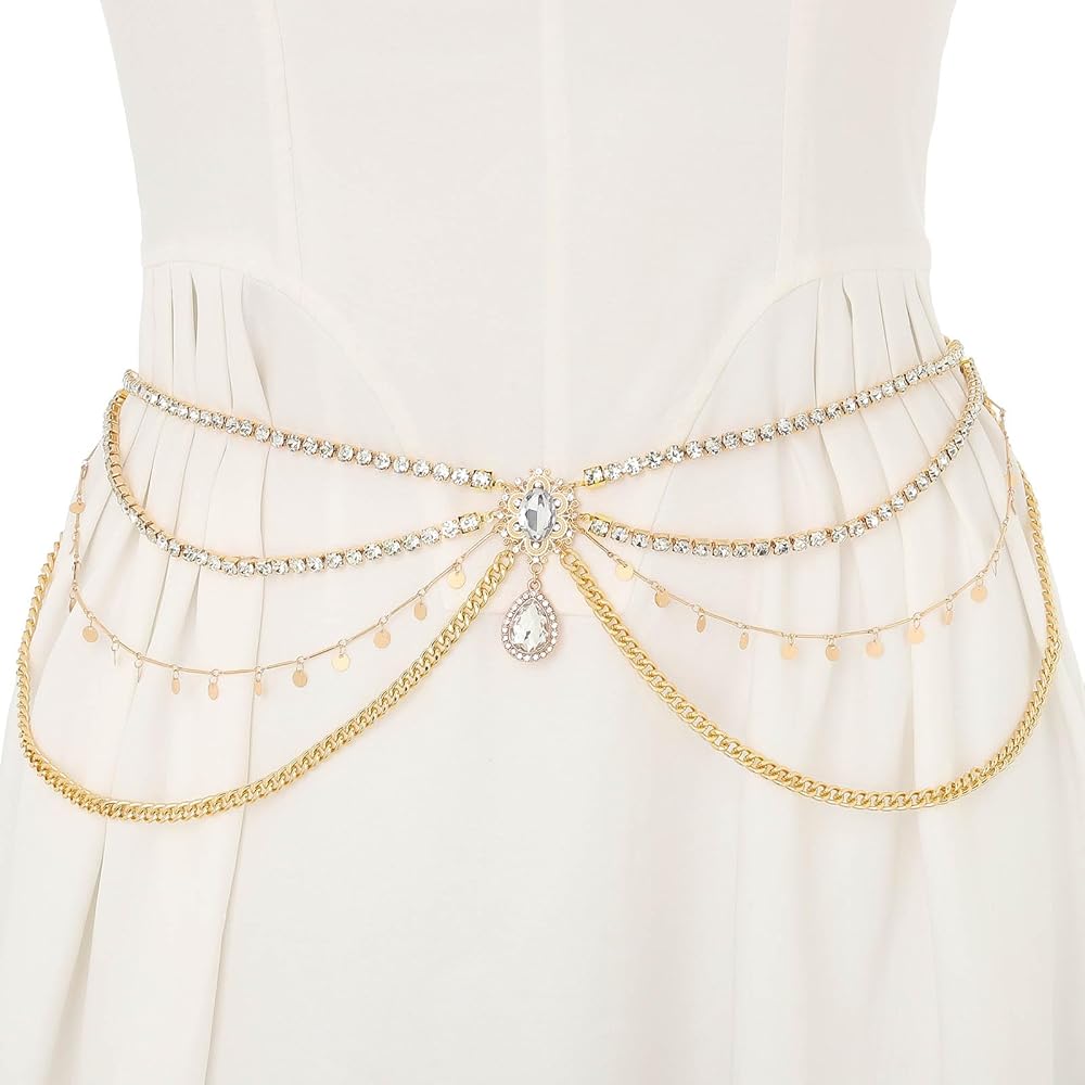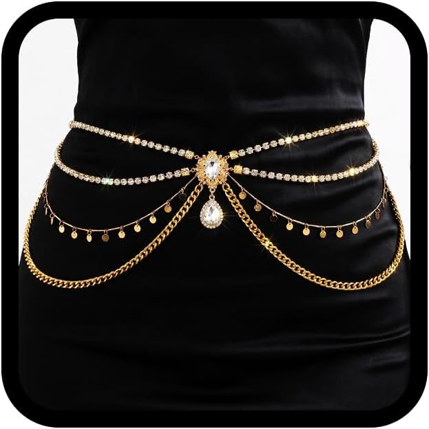 Unique design:The Rhinestone Belt Chain consists of a delicate rhinestone pendant with 2 layers of large rhinestones and a sequin chain, which makes it delicate and sparkling on the body, making it unique!