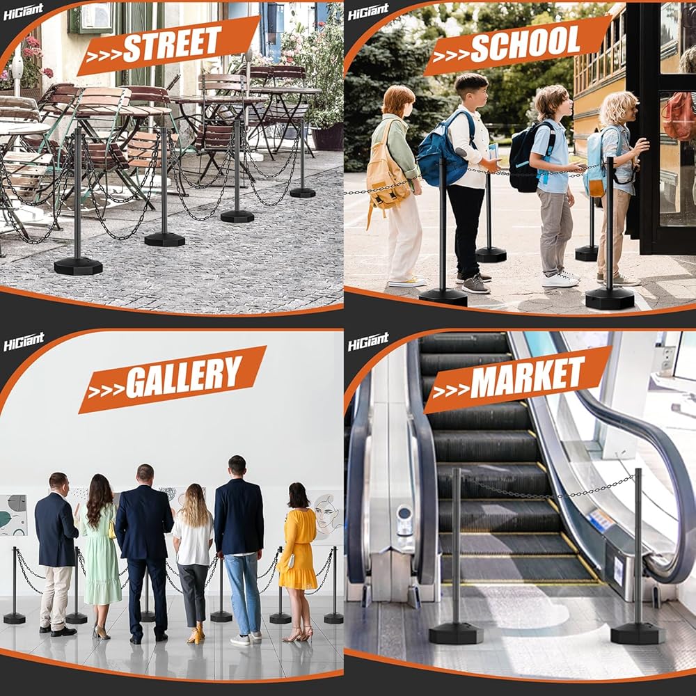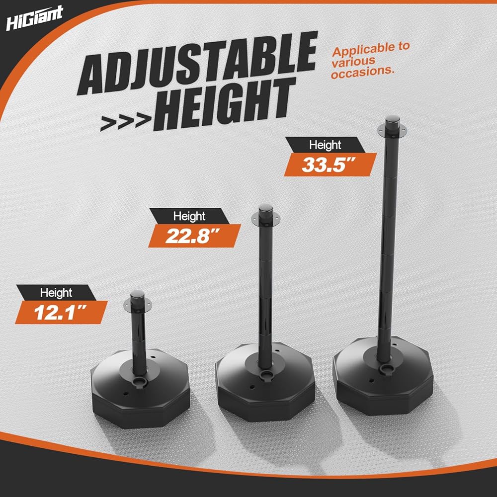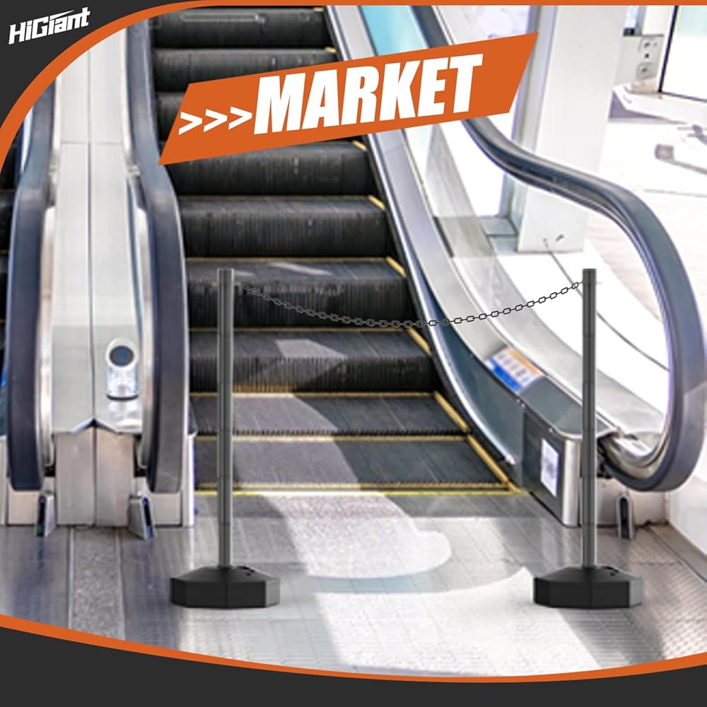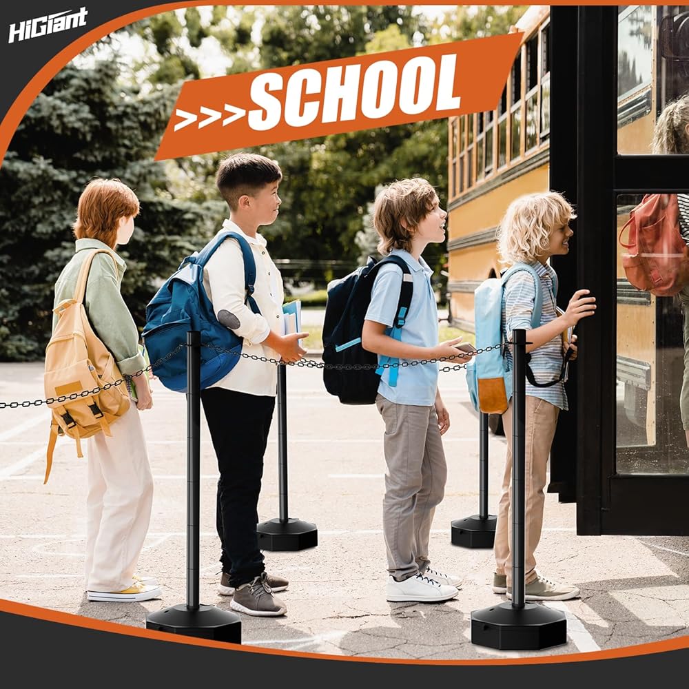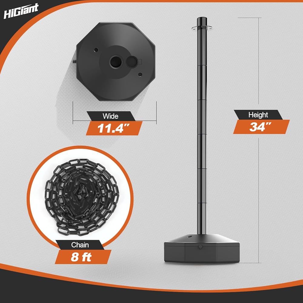 HiGiant 2 Pack Portable Delineator Post Cones with Fillable Base, Expandable Traffic Safety Barriers, 8Ft Chain Stanchion for Parking and Construction [Black]