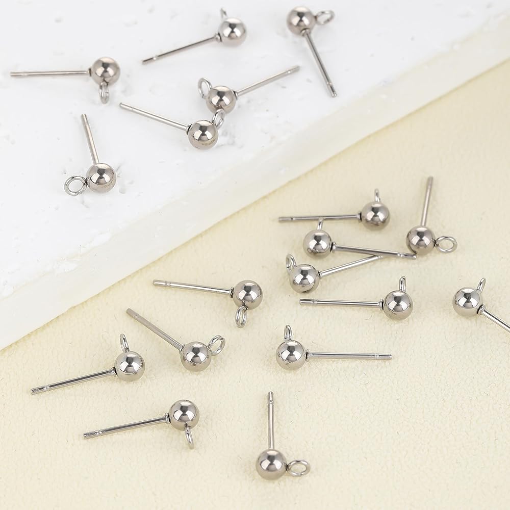100pcs ball post earring studs with loops.They packed on a small plastic transparent bags.,which is easy to use.