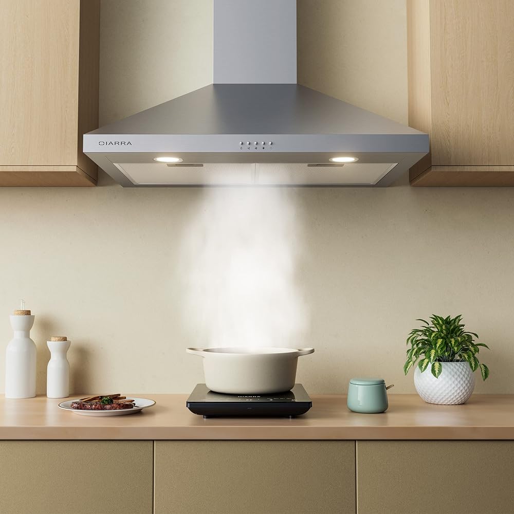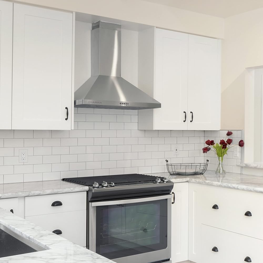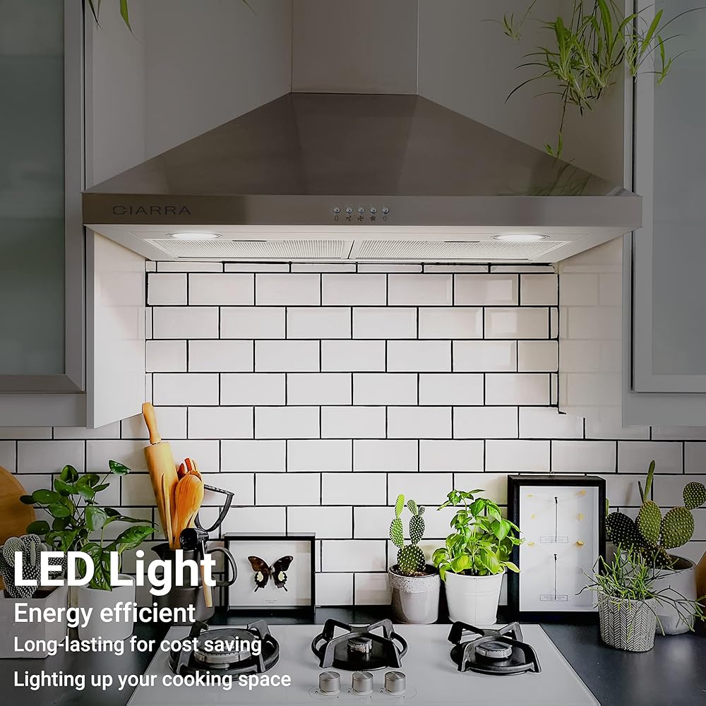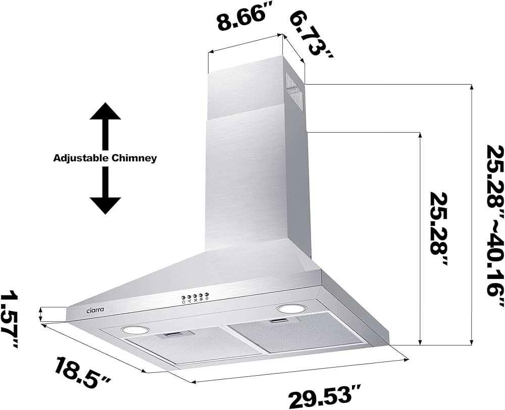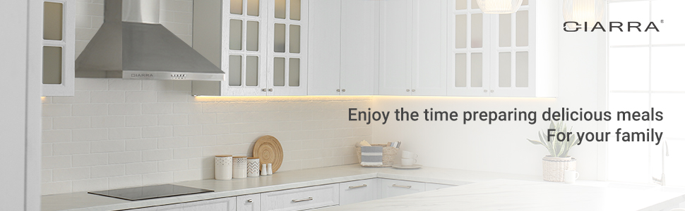 USER-FRIENDLY DESIGN: Ciarra range hood 30 inch with mechanical push button for convenient control. Made of premium 430 grade brushed stainless steel, easy to clean, with long lifespan.