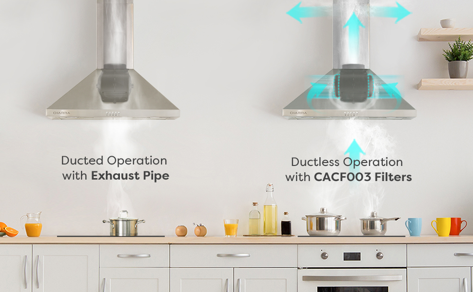 CONVERTIBLE VENTILATION MODE: hood vent 30 inch operated in ducted or ductless mode, if you would like to convert your range hood to ductless, you will need to purchase CACF003 carbon filter.