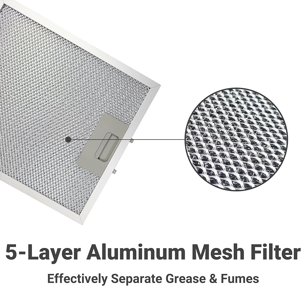 SUPERIOR FILTRATION: 30 inch kitchen hood with mesh filters, trap cooking grease and oil with ease, preventing smells and odors spreading in your kitchen.