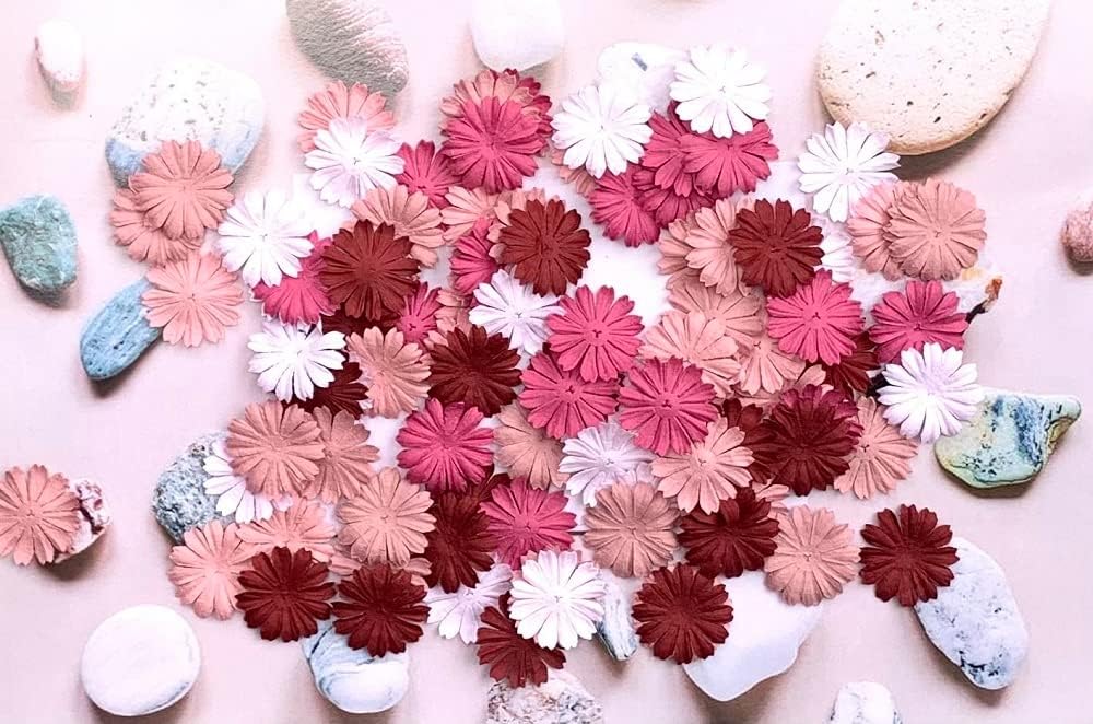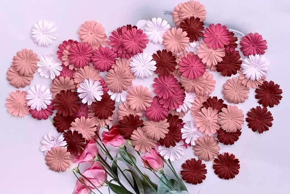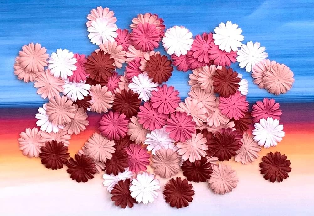 These flowers are Handmade with mulberry paper, the flowers are perfect embellishments for your scrapbooking or other craft projects. usually used for wedding, romantic projects. they can be adhered to your project with glue, stitches, brads