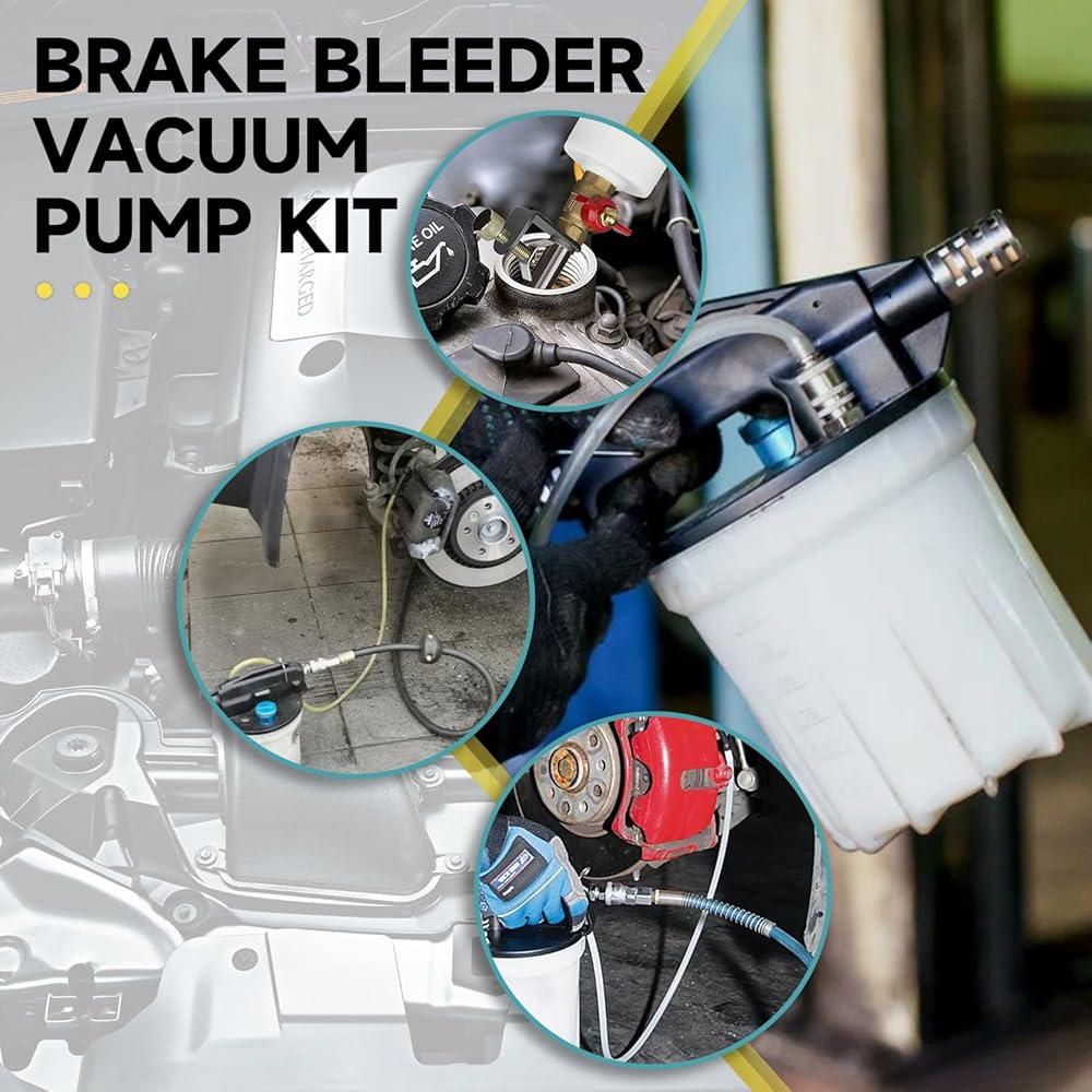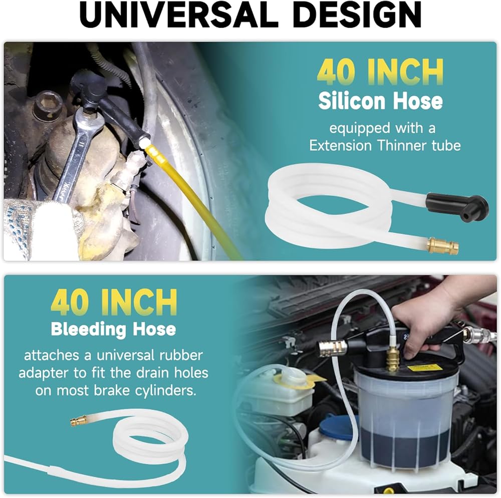 【Efficient and Powerful】: Equipped with a high-powered vacuum pump, with an air valve inlet pressure range of 4.8-11.6 Bar (70-170 PSI), the nihao Vacuum Brake Bleeder Kit delivers exceptional suction force, ensuring quick and thorough evacuation of air from your brake system.