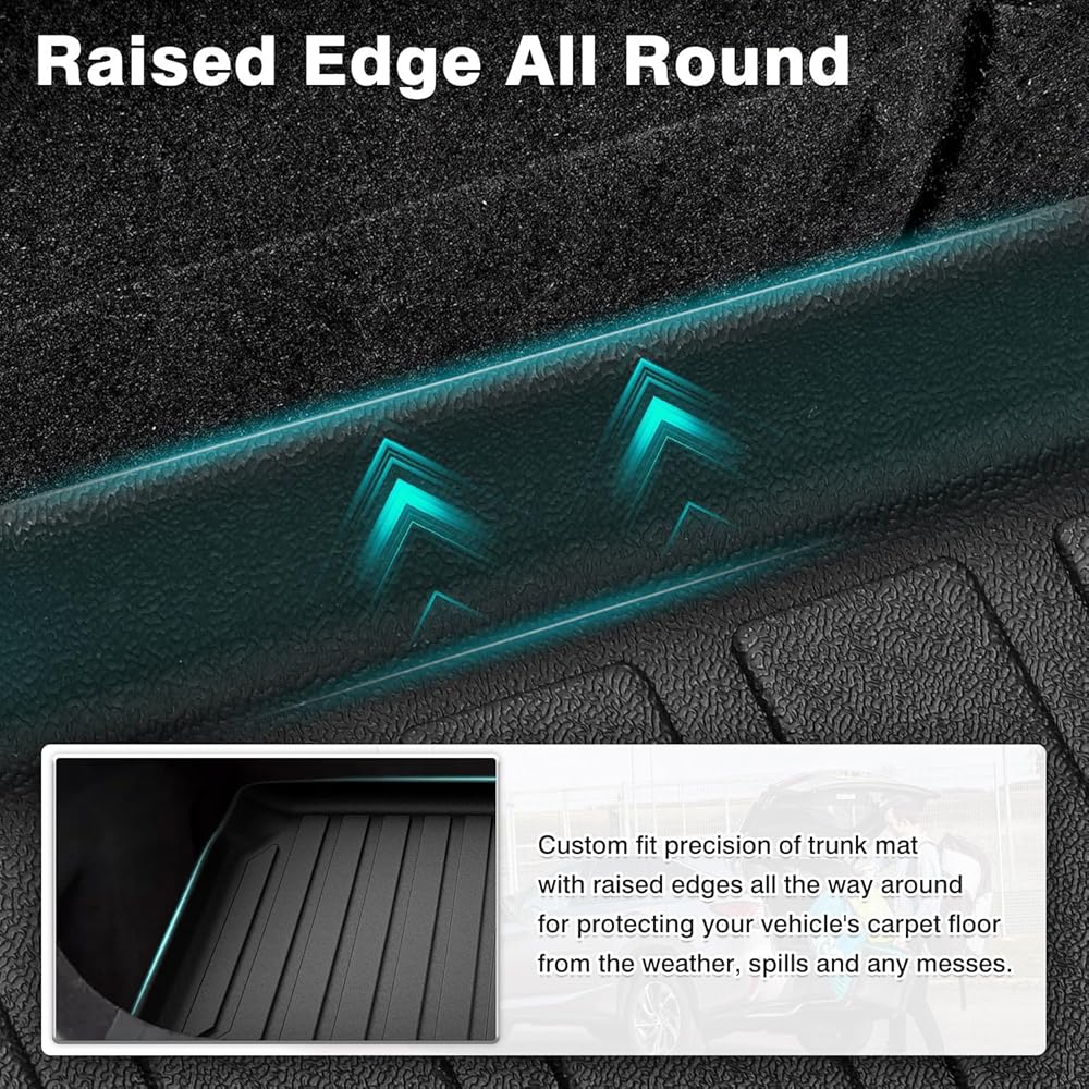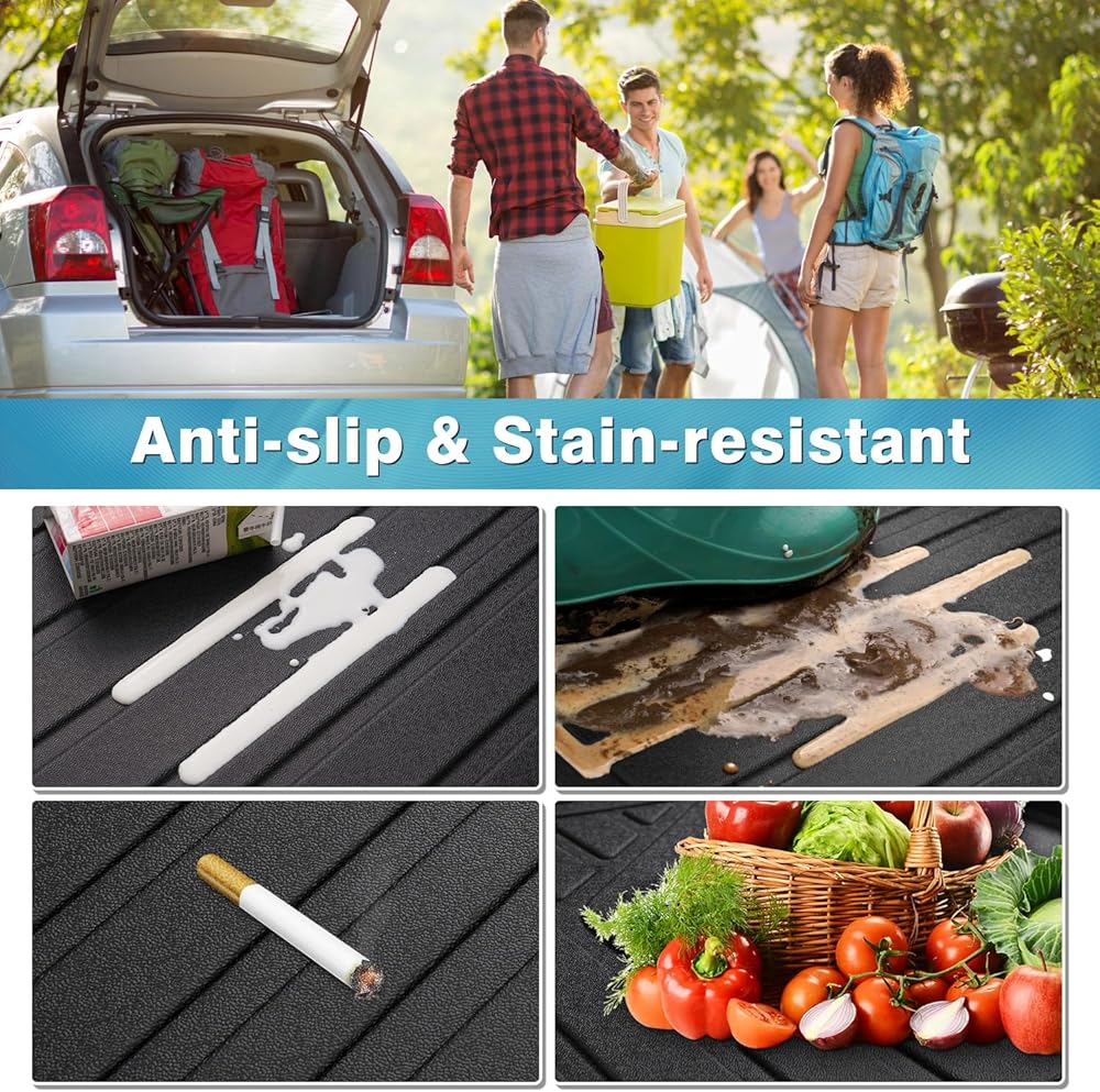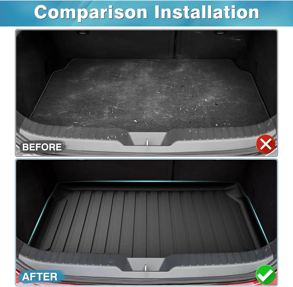 Remove Mess Easily: With the weatherproof and stain-resistant surface, cargo liner is easier to clean by wiping with wet towel or rinsing with water directly. Quick and simple to make your mat look new again.
