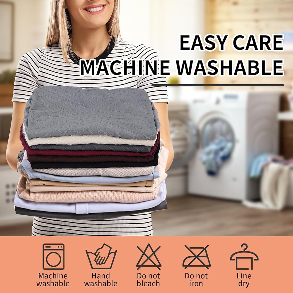 PERFECT DESIGN: The fabric of Fuloon cushion covers is soft and does not require ironing after washing. Stretchy enough to wrap around the chair perfectly. Stylish diamond check jacquard fabric is soft and comfortable, durable, wrinkle-resistant, easy to install, give your old chairs a makeover to look like new.