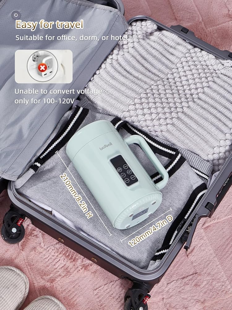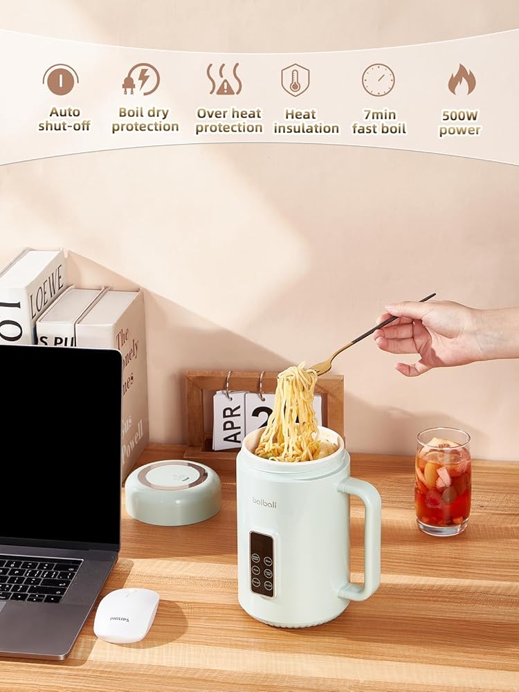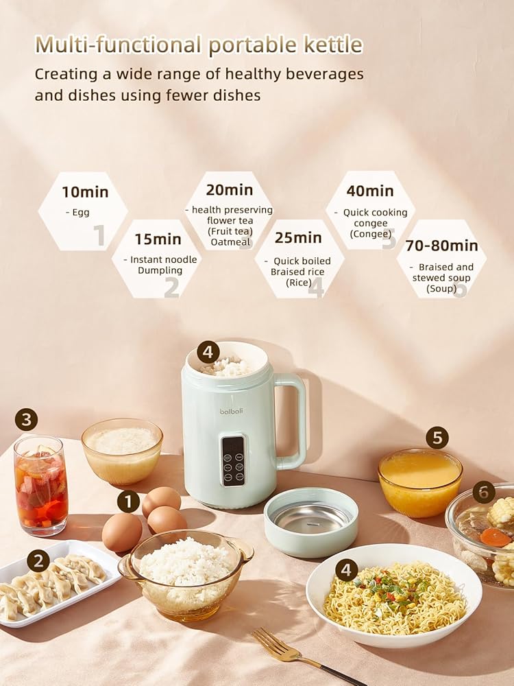 balbali Portable Electric Pot for Cooking Dorm Room - 28oz Non-stick Travel Electric Kettle, Mini Hot Pot with Temperature and Time Control - Self Heating Soup/Rice/Ramen Cooker/Warmer Green