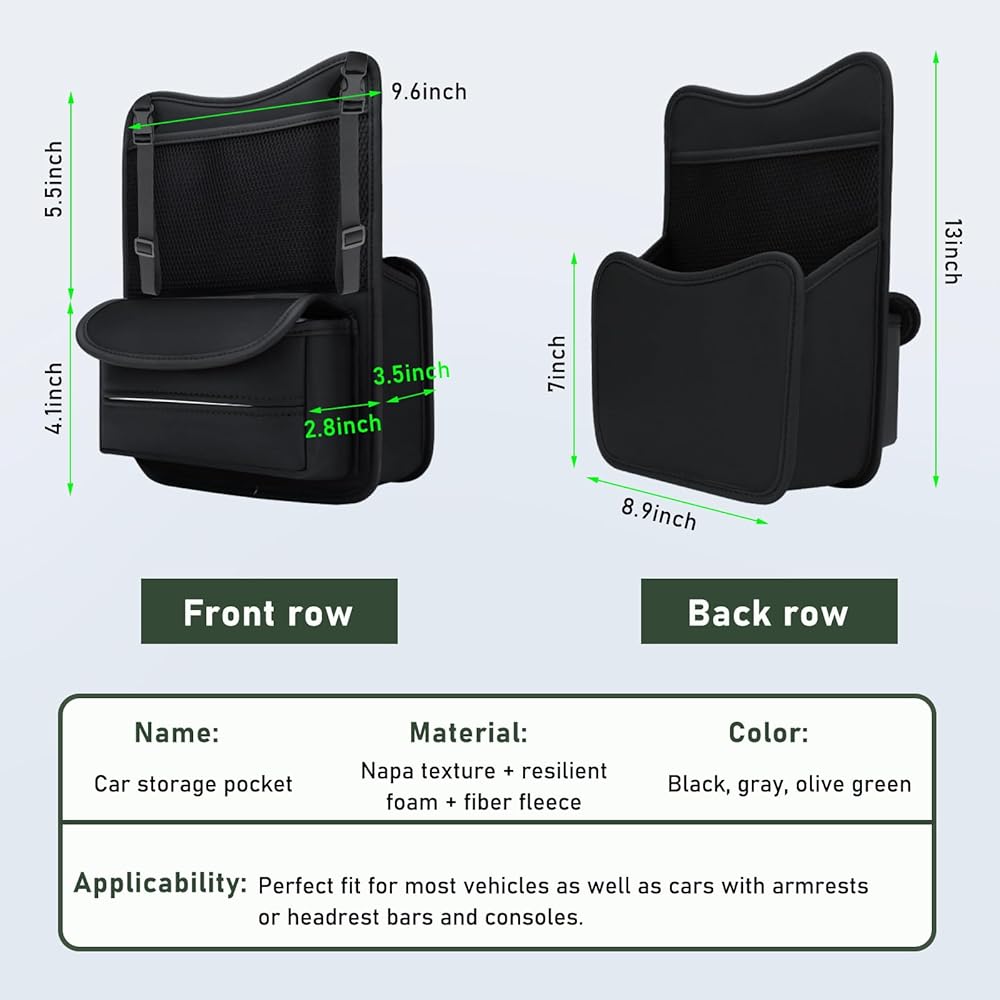 【Widely Applicable】: This storage organizer is suitable for most vehicles with armrest boxes or headrest bars and consoles. It is a great helper for storing snacks or essentials during your travels. It has storage on both the front and back, making it convenient for both the front and back rows.