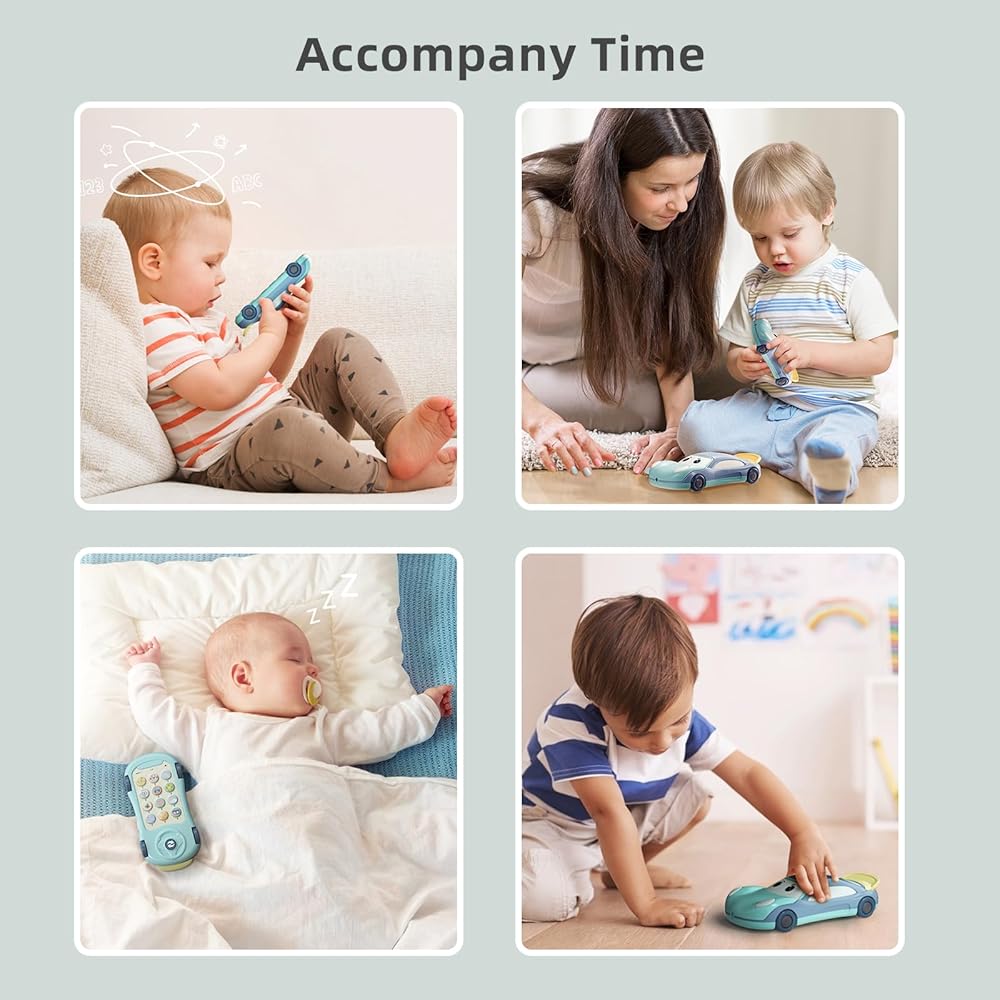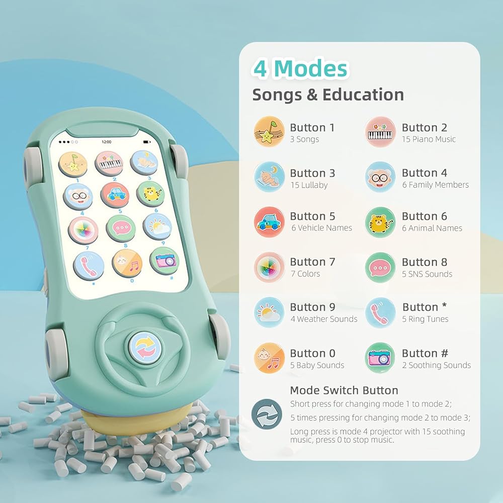 Baby Phone Toy with Music Light Mini Projector, 4 Mode Learning Toddler Infant Soothing Car Toys - Number Counting Color Animal Sound Fun Smart Phones, Lullaby Fine Motor Hand Activity Playing(Blue)
