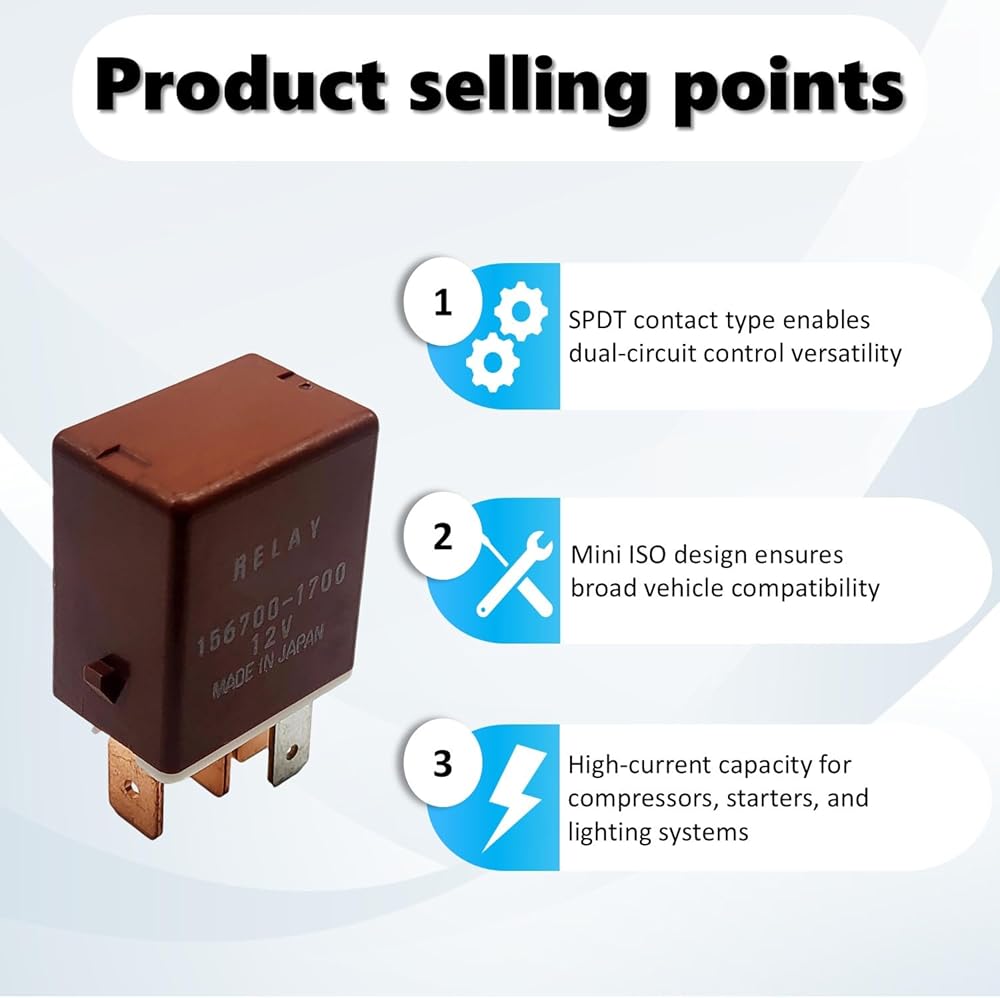 Easy Installation: With its mini ISO design and plug-in terminals, the 156700-1700 relay allows for easy and hassle-free installation. It provides convenience and saves time during automotive projects.