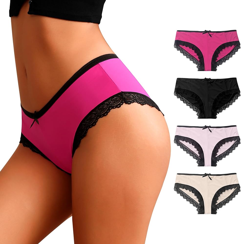 This Lace Trim Classic Underwear have 4 colors for you to choose:Black,Pink,Rose Red and Apricot. Cheeky briefs for women that not only prioritize comfort but also celebrate individuality, making each knicker a unique expression of personal style. Lace trim and a tiny front bow give a feminine touch.