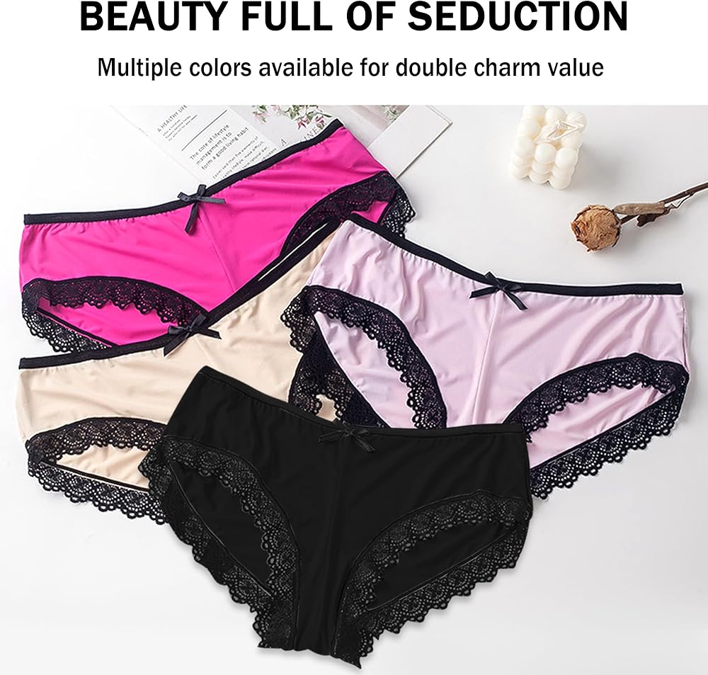 【Soft and Strenchable Underwear 】The Soft panties are made of 88% nylon and 12% spandex which have nicely strenchy.It is lightweight and skin-firendly,delivering a comfortable wearing experience.These women's briefs are the perfect cut!Unlike other ladies panties,the lace trim lays flat where it meets the panel of the underwear to minimise panty lines.
