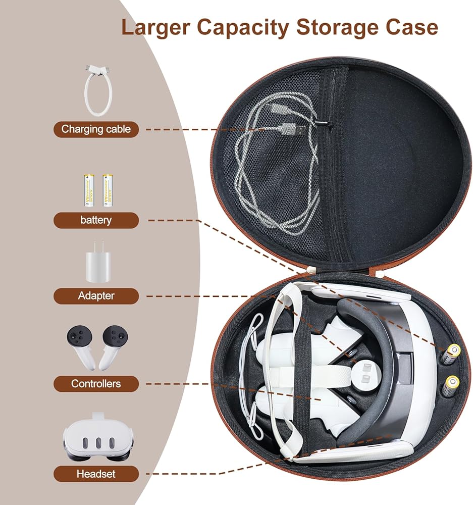 For Meta Quest 3: JOYTORN carry case is specially designed for Quest 3 original head strap(NOT compatible with elite head straps) and controller grips and charger, making it convenient for storage and travel.