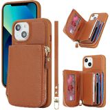 for iPhone 14 Case,for iPhone 13 Case,[Lanyard Case] [Card Slots] [Coin Pocket] [Leather Cover] Zipper Case Flip Cover with Wrist Strap Lanyard Compatible with iPhone 14 / 13-Beige