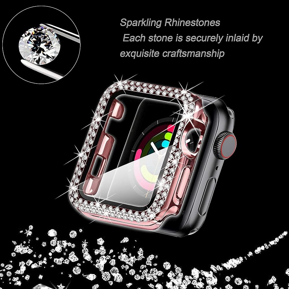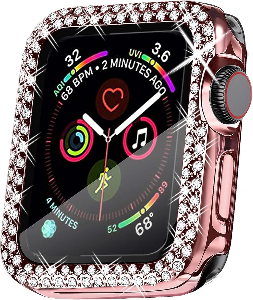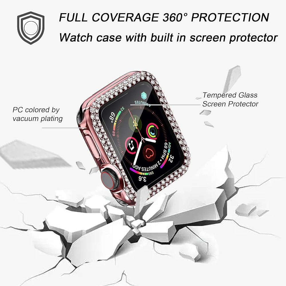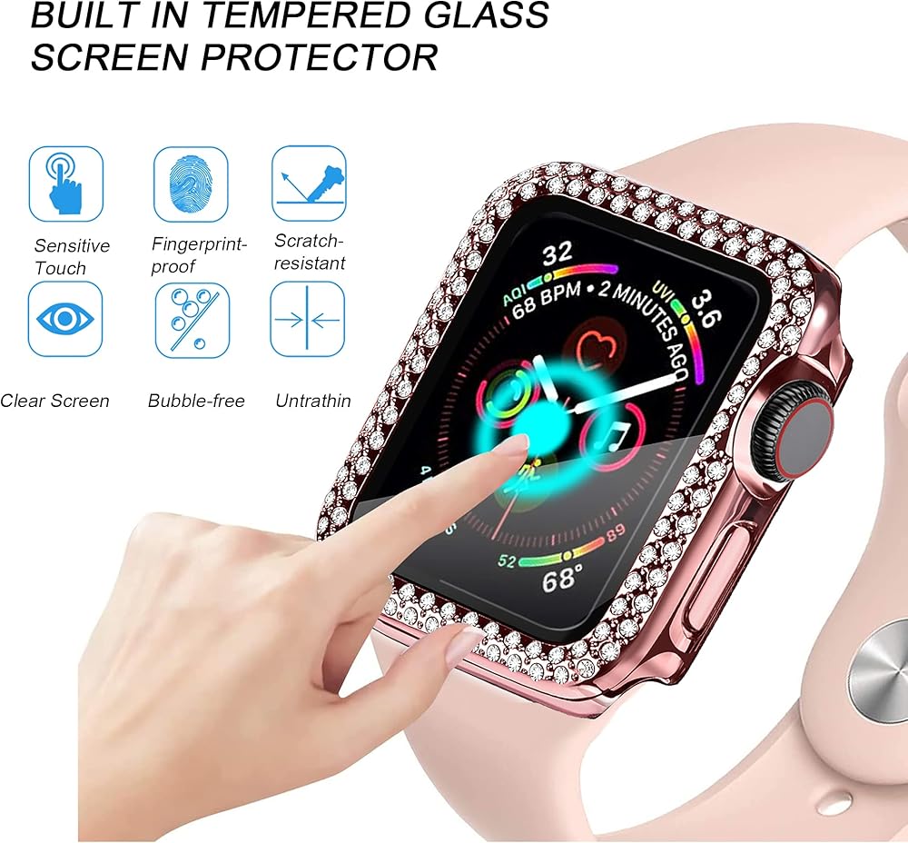 جراب واقٍ لامع: مصنوع من البولي كربونات الفاخر، لا يتغير شكله أو يتغير لونه. مرصع بأحجار الراين الرقيقة والمتلألئة لضمان مظهر لامع أنيق لساعتك.