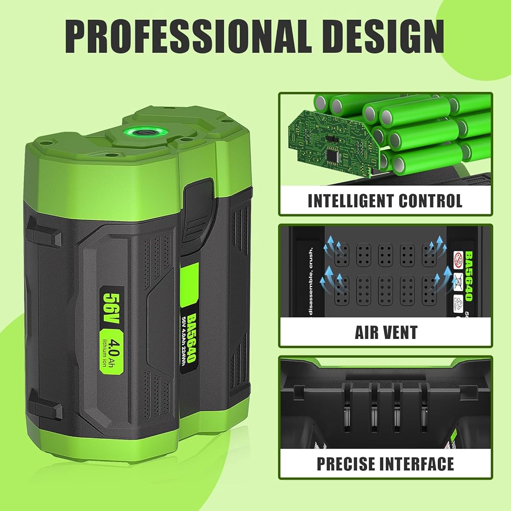 ✔【100% Compatible】Replacement for EGO 56V BA2800 BA2800T BA4200 BA4200T BA1400 BA1400T BA5600T BA2240 BA1120 Battery, 100% Compatible with EGO 56V CS1604 CS1804 CS1403 HT2400 LB6504 LB5804 LB6500 LB4800 HTA2000 STA1500 PH1400 PSA1000 Tools,Perfect fit all EGO 56V Chargers and 56V Tools.(NOT Fit EGO Nexus Portable Power Station PST3040/PST3042)