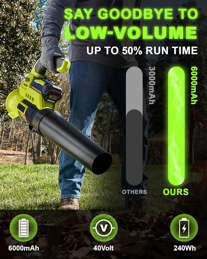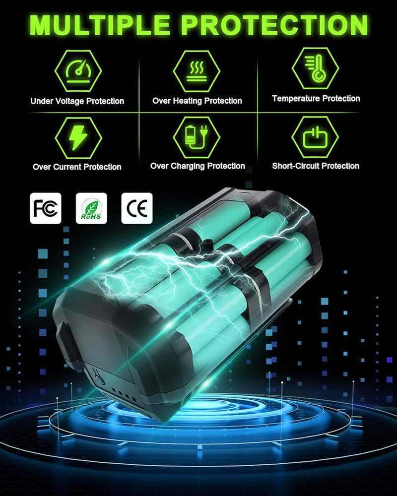 HIGHER CAPACITY : Upgrade to 6000mAh high capacity with advanced cells for long-lasting performance, 2X longer than run time the standard 3.0Ah; No memory effect, can be charged or discharged as needed without loss of capacity.