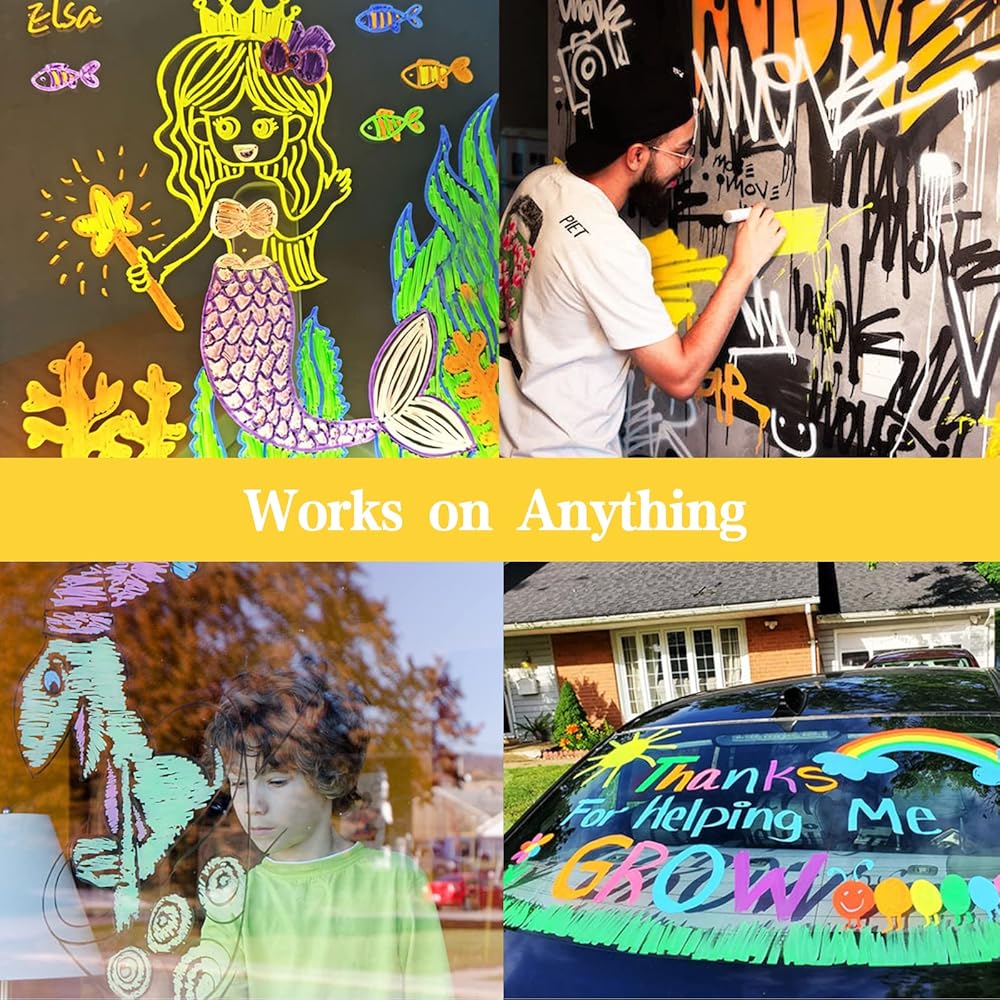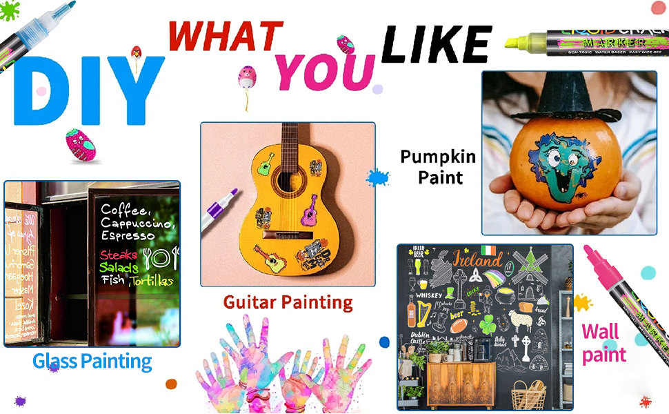 ❤[Makes life vibrant] The liquid chalk markers great for shopping mail, market, cafe, hotel, school, home,Restaurant, office, bistro Menu Board, POP Art, AD Drawing, Party Decor, Teaching and wedding getaway car, car dealership, classroom blackboard, Christmas banner, poster, DIY craft projects, holiday decorations and more.