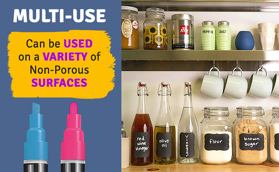 ❤[On any non-porous surface] - The chalk marker pen Perfect for window or erase boards (Such as Chalkboard, Whiteboard, LED board, Blackboard). These chalkboard markers also make great window markers and dry erase markers! Use these chalk markers for glass, tile, contact paper, stickers, whiteboards, plastic, and metal with ease. Restaurant Menu Boards, Dry Erase boards, Windows, Kids Science Fair Posters, Art Projects or any other chalk masterpiece you can think up!