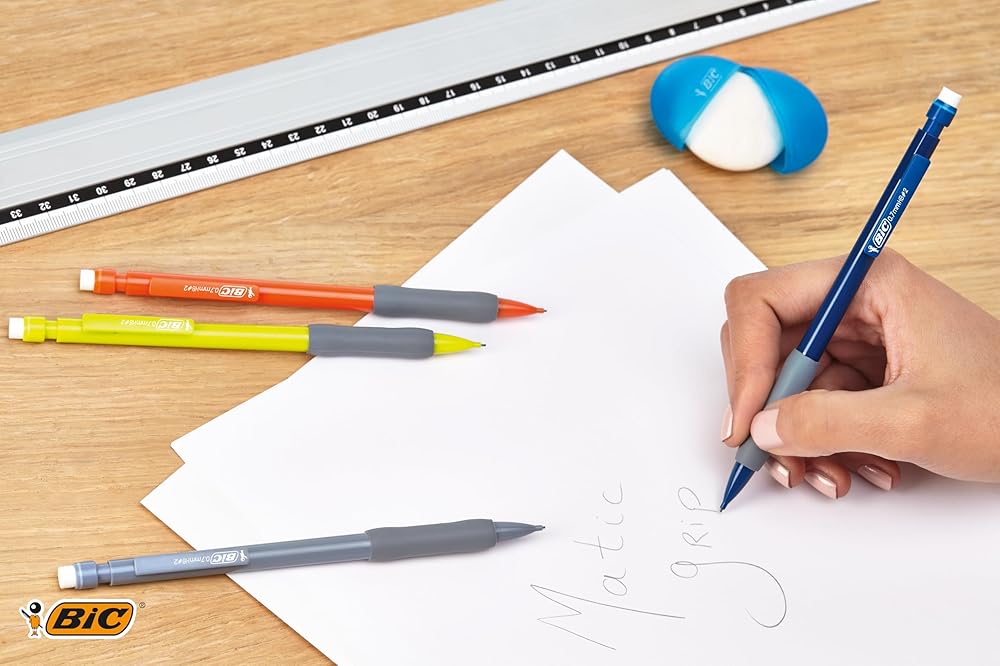 An ultra resistant mechanical pencil that writes 2 times more than a graphite pencil. These brightly coloured pencils look fab and there's no need to sharpen, as all you need to do is click to get a new lead. A squishy rubber grip means it's extra comfortable to use. The 3 HB leads included with each pencil give you 10km of writing and there's an eraser on the end if you happen to make a mistake.