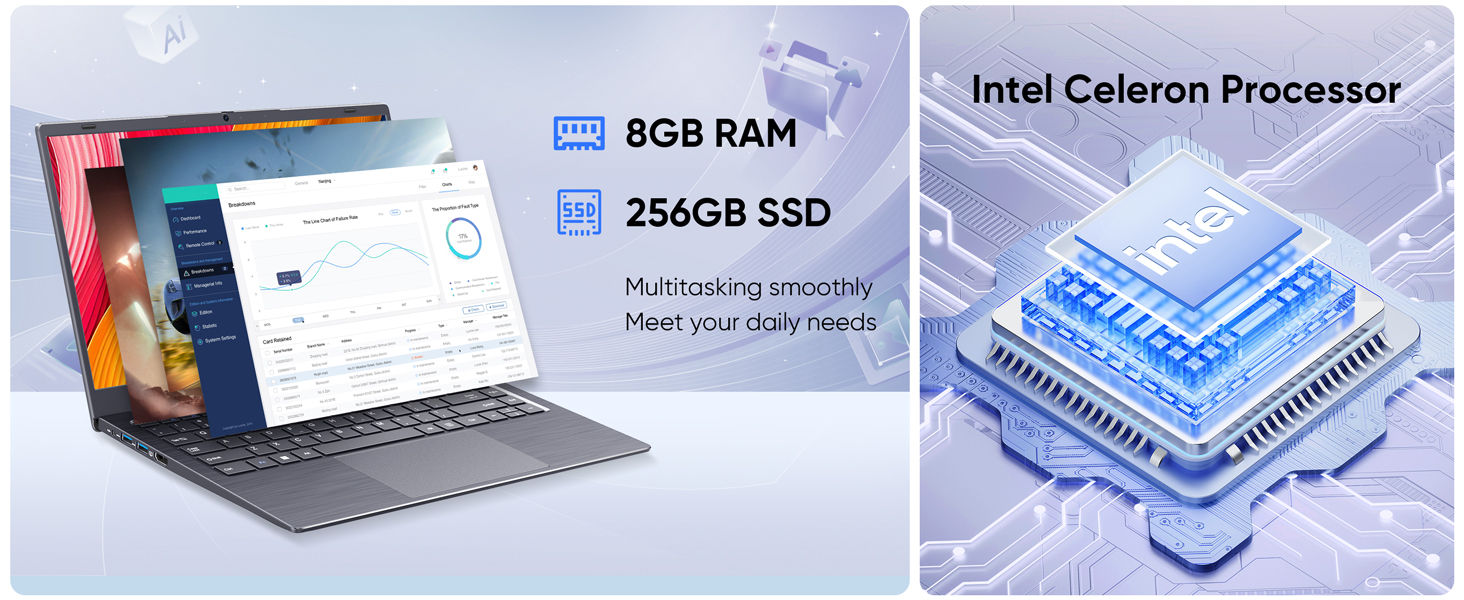 2024 Newest Laptop Computer, 8GB RAM Laptop 256GB SSD, Intel Celeron Processor Windows 11 Laptop, 14 Inch Full HD 1080P IPS School Laptop, Support 2.4G/5G WiFi, USB 3.0, Long Lasting Battery