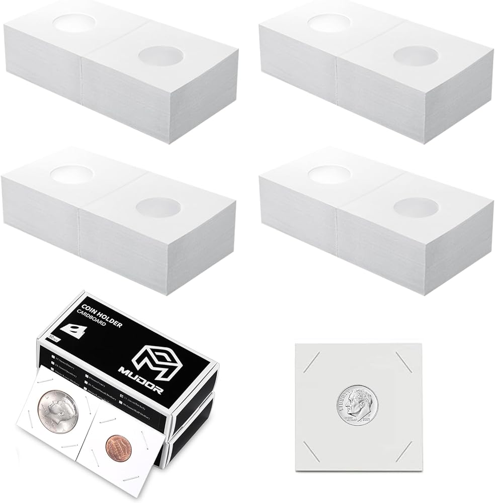 MUDOR Upgraded Premium Coin Flips for Dime, 200 Pack Cardboard Coin Holder, Mylar Coin Flips 2x2, Paper Coin Holders