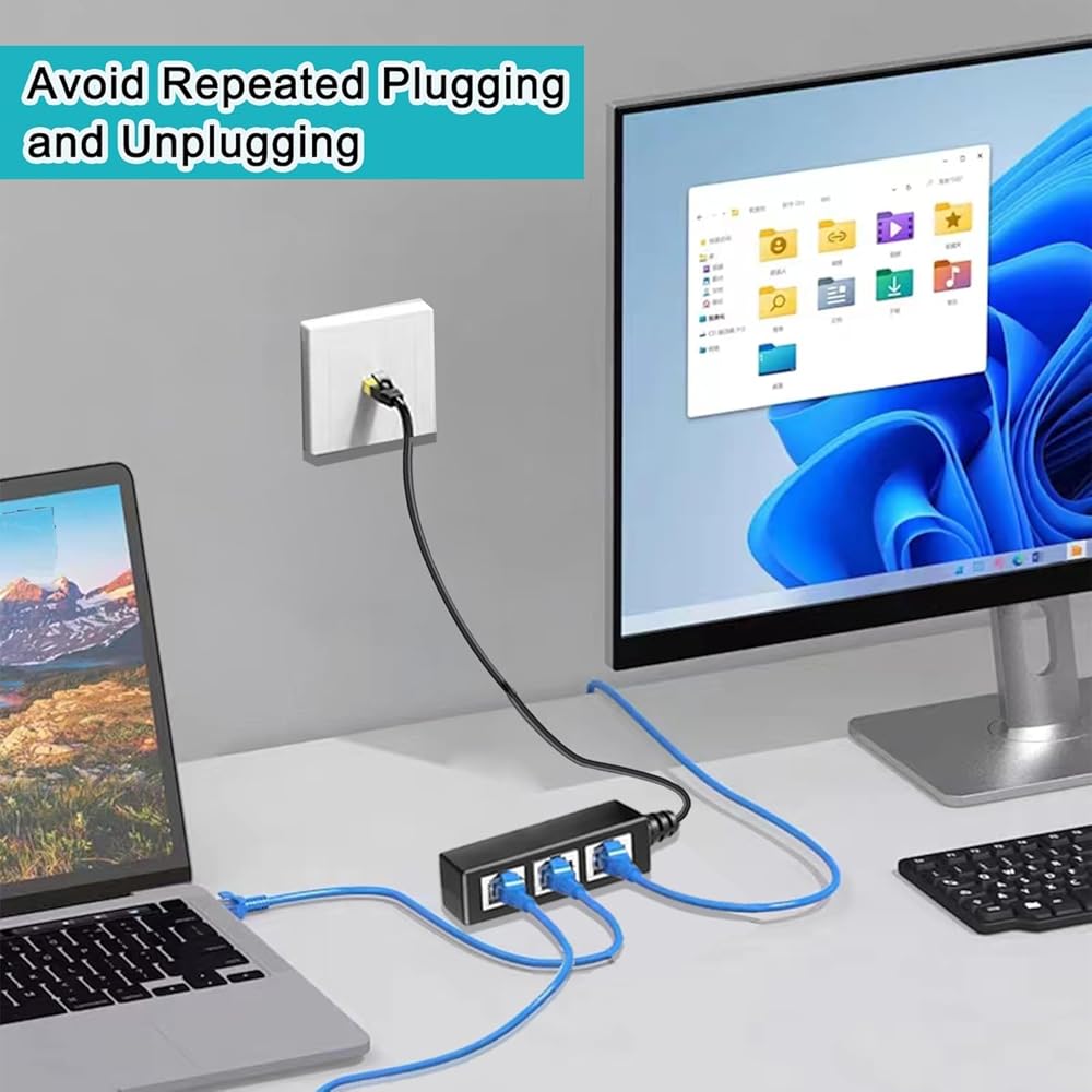 【Plug & Play】USB cable powered, only 5v1A required to plug in to your computer, no additional software or drivers to install.Simple but not cheap, durable high-quality materials, network cable splitter built-in thick environmentally friendly PCB circuit board, aluminum alloy shell, RJ45 eight-core standard jacks, gold-plated pin core, integrated mechanical welding, the transmission of the signal is more stable, the design of the closed insulated module is more convenient, the use of more secure.