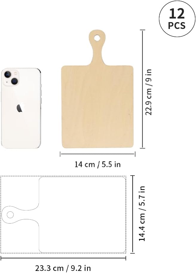 Specification:The sublimation plywood mini cutting boards rectangle is 11.8 x 6.3 inches,with an individual bag each piece,come with stand each piece,12 pieces with brown gift box.