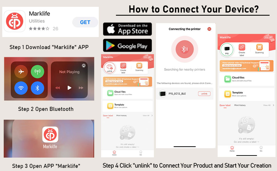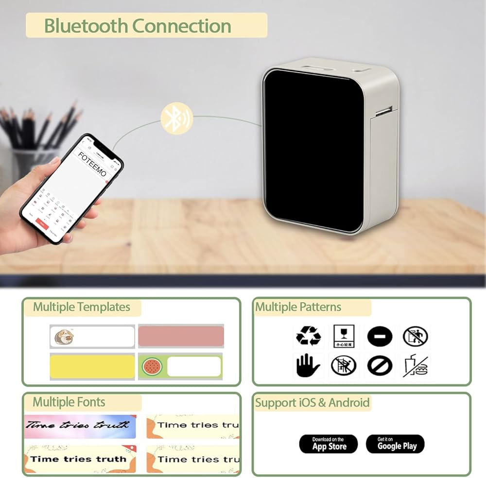 🌟Compact and Portable - This Bluetooth sticker label printer requires no ink, powder or ribbon and prints with thermal technology for convenience, clarity of content and lower cost. Built-in durable rechargeable battery for long working time, smaller and more portable compared to traditional printers.