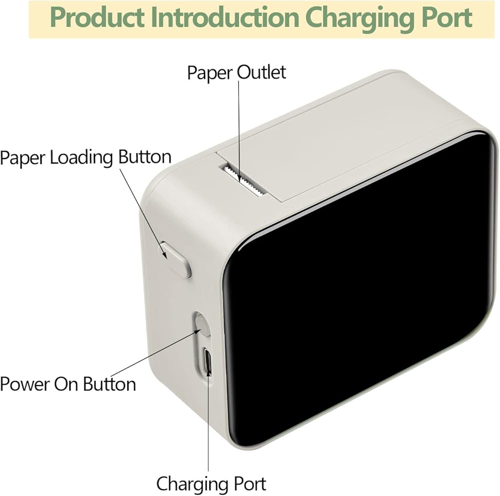 🎁Great Gift - Mini thermal lable printer is the best gift choice, you can buy one for your friends or family as Christmas gift, birthday gift! Please note: When using the portable thermal label printer for the first time, please charge the label printer for 20 minutes before you turn it on. Note: The small black screen will not show anything.