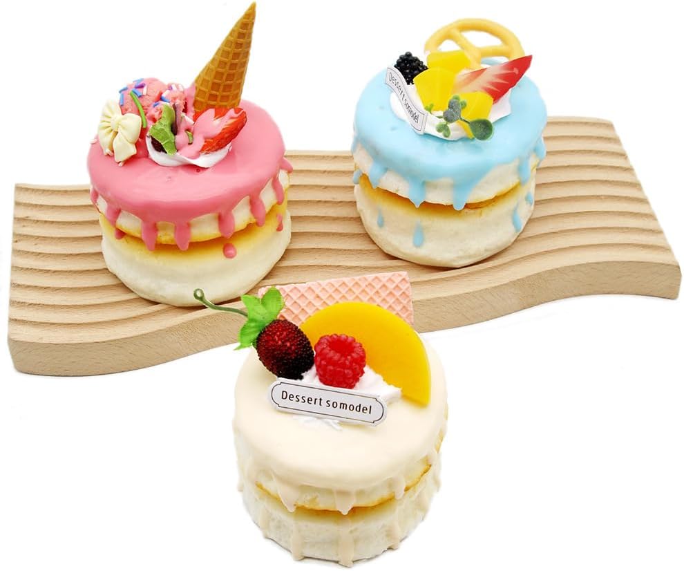 The fake cake food model is designed with a vivid dessert appearance, which looks real, making your decoration more attractive. Package Includes :only 3 Pcs Artificial Realistic Cake (NOT include plate and accessories).
