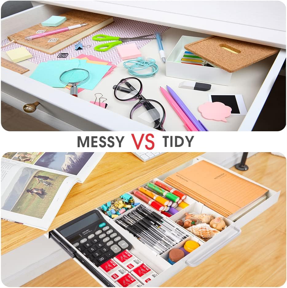 【Customize the Space Needed】 -- Both the pencil box and the slide divider move freely in both directions, giving you the flexibility in optimizing the size of the internal compartments to keep your drawer contents neat, organized and readily accessible.