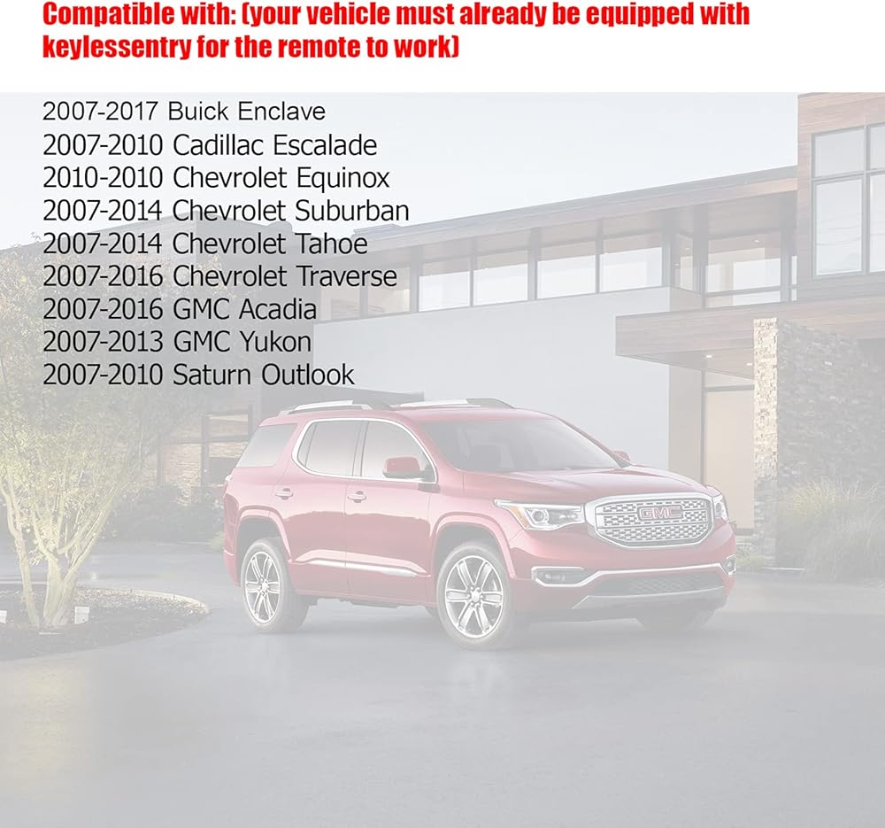 • 【COMPATIBILITY】Compatible with Cadillac Escalade 2007-2014 , SRX 2007-2008,Chevrolet Suburban 2007-2014,Tahoe 2007-2014, Traverse 2009-2017,GMC Acadia 2007-2016,Yukon 2007-2014,Saturn Outlook 2007-2010,Buick Enclave 2007-2017.
