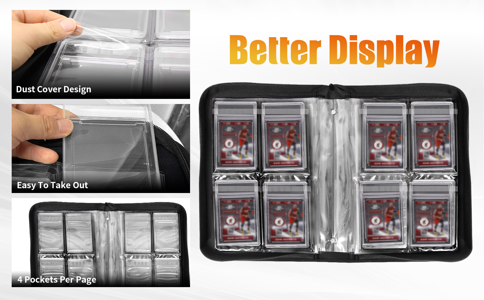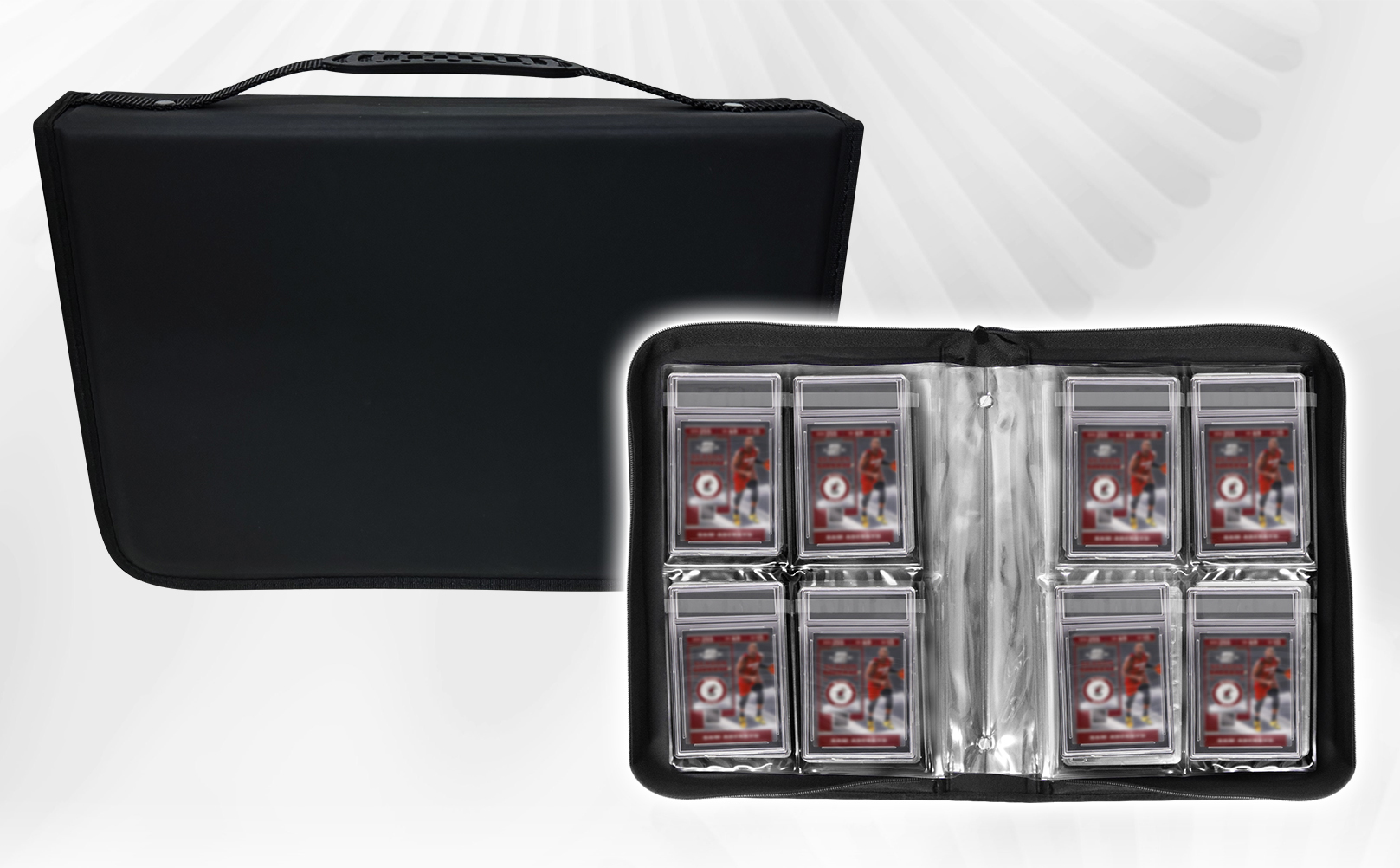 【Premium Build】our Slab Binder crafted with premium materials and equipped with a deluxe zipper and handle. Experience the freedom of effortlessly showcasing your prized graded cards on the go, perfect for collectors who demand both quality and convenience