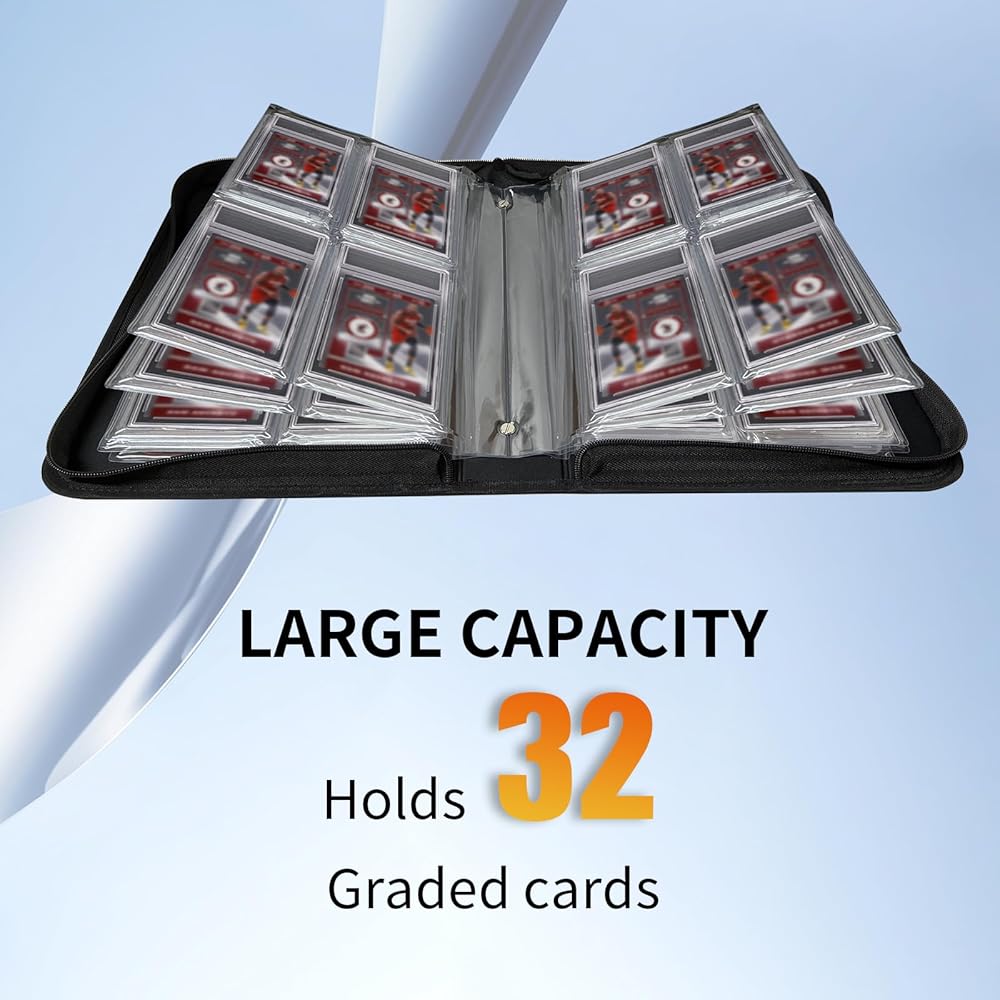 【Store 32 Graded Cards】Take a look at our exclusive graded card binder tailor-made for collectors like you. Designed to hold 32 graded cards, spread across 8 pages, each featuring 4 slots, it's the ultimate display solution for your prized collection!