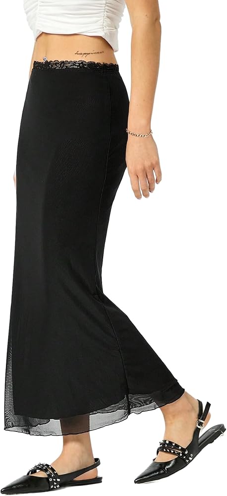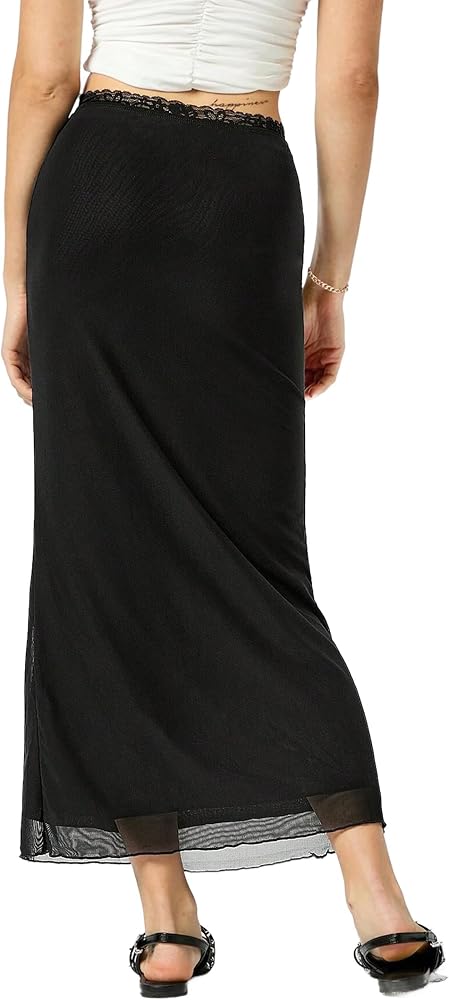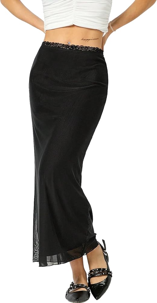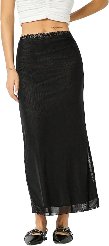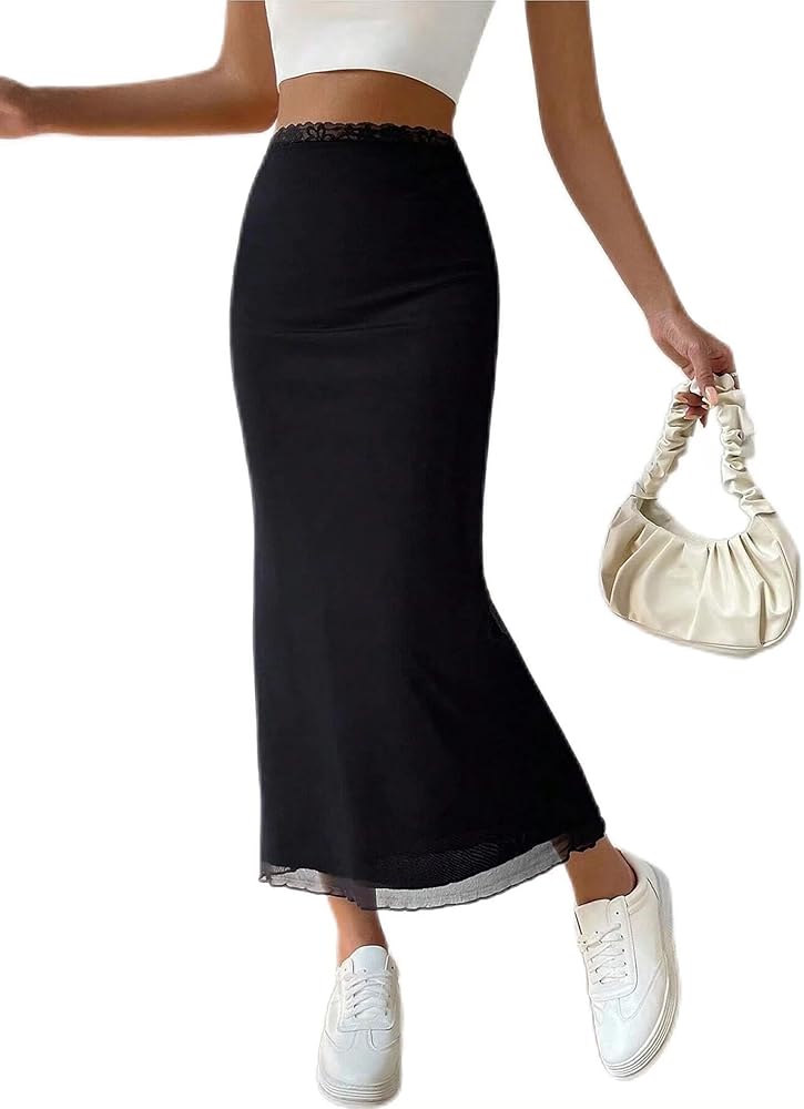 Avanova Women Mesh Bodycon Midi Skirts High Elastic Wasited Elagant Summer Long Skirts