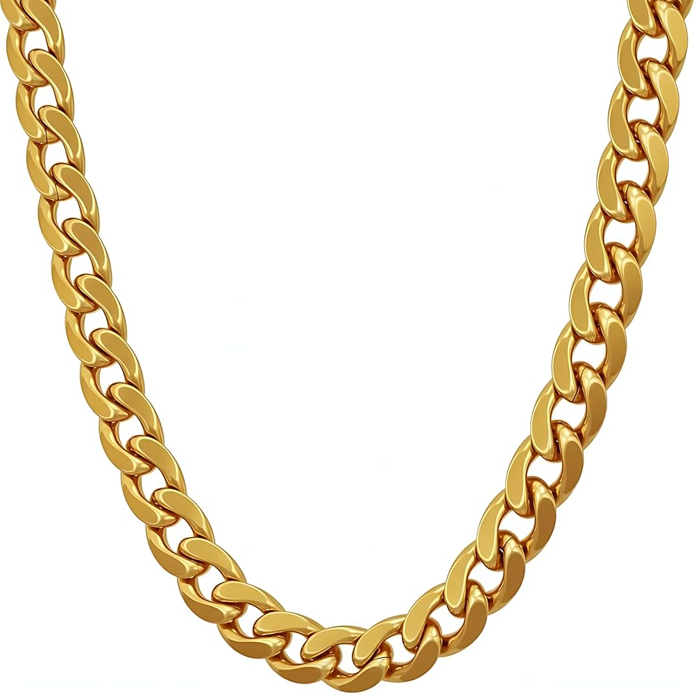 This Sleek 7mm ( ~ 1/4” ) Miami Curb Link Necklace is Made To Last with up to 20X more 24 karat real gold plating than standard electroplated fashion jewelry; Choice of Gold or White Gold (Rhodium)