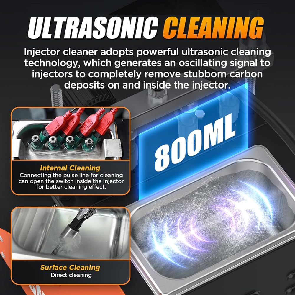 【Powerful Cleaning Effect】The ultrasonic fuel injector cleaner adopts strong ultrasonic cleaning technology with 40kHz ultrasonic frequency and 60W ultrasonic power. Our ultrasonic fuel injector cleaner has strong cleaning ability, which can clean objects with complex surfaces, such as blind holes, deep holes, etc. The scientific parameter design of frequency and power can effectively make your valuables and items clean as before without causing any damage.