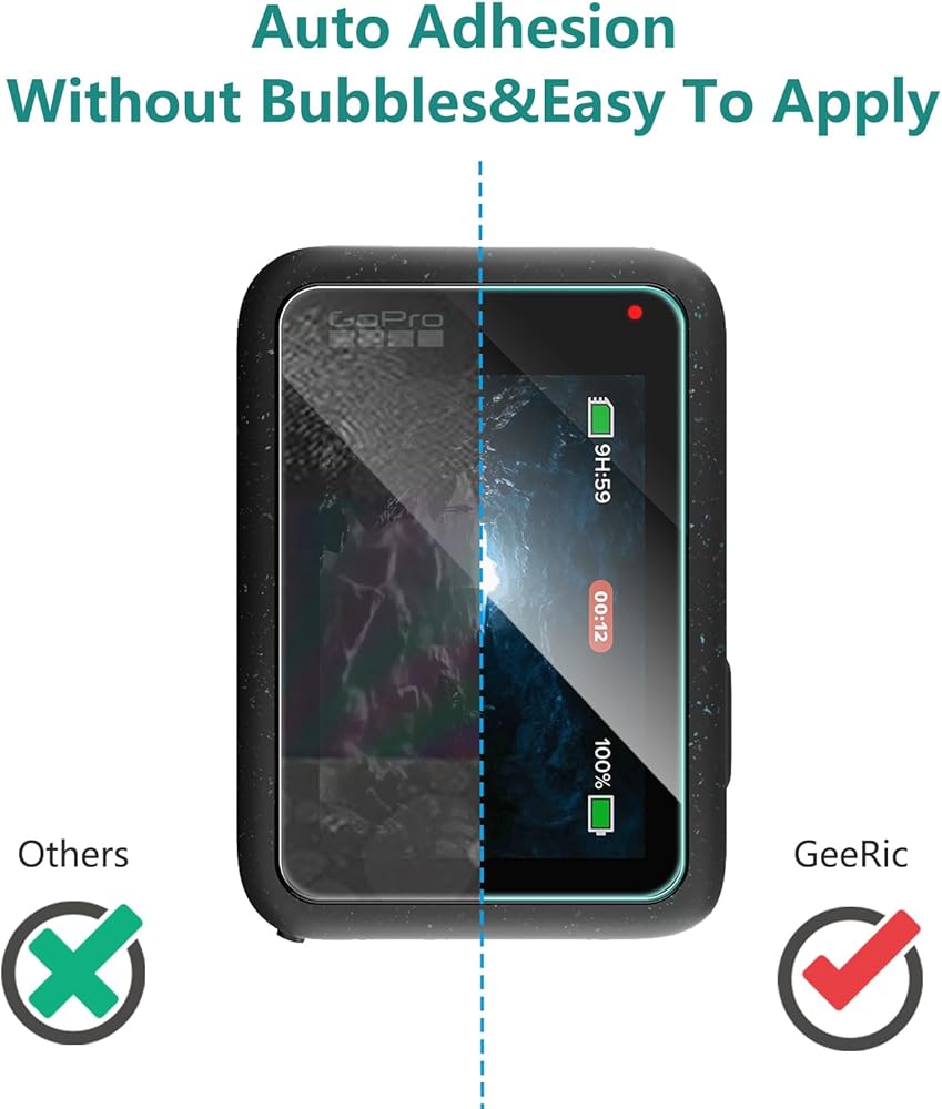 Compatibility: the screen protectors compatible with GoPro Hero 12/11/10/9, precision-cut to fit the screen and lens perfectly.