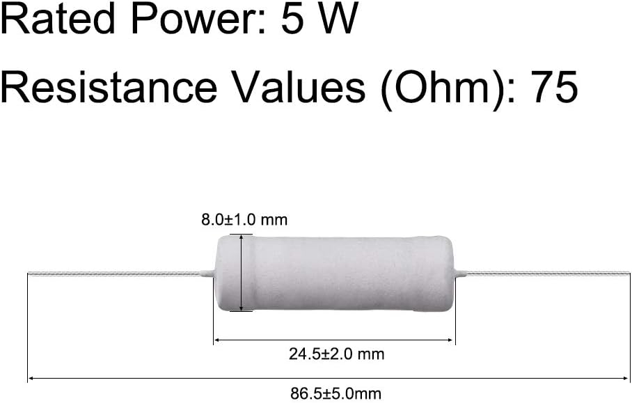 uxcell 30Pcs 75 Ohm Resistor, 5W 5% Tolerance Metal Oxide Film Resistors, Lead, Flame Proof for DIY Electronic Projects and Experiments
