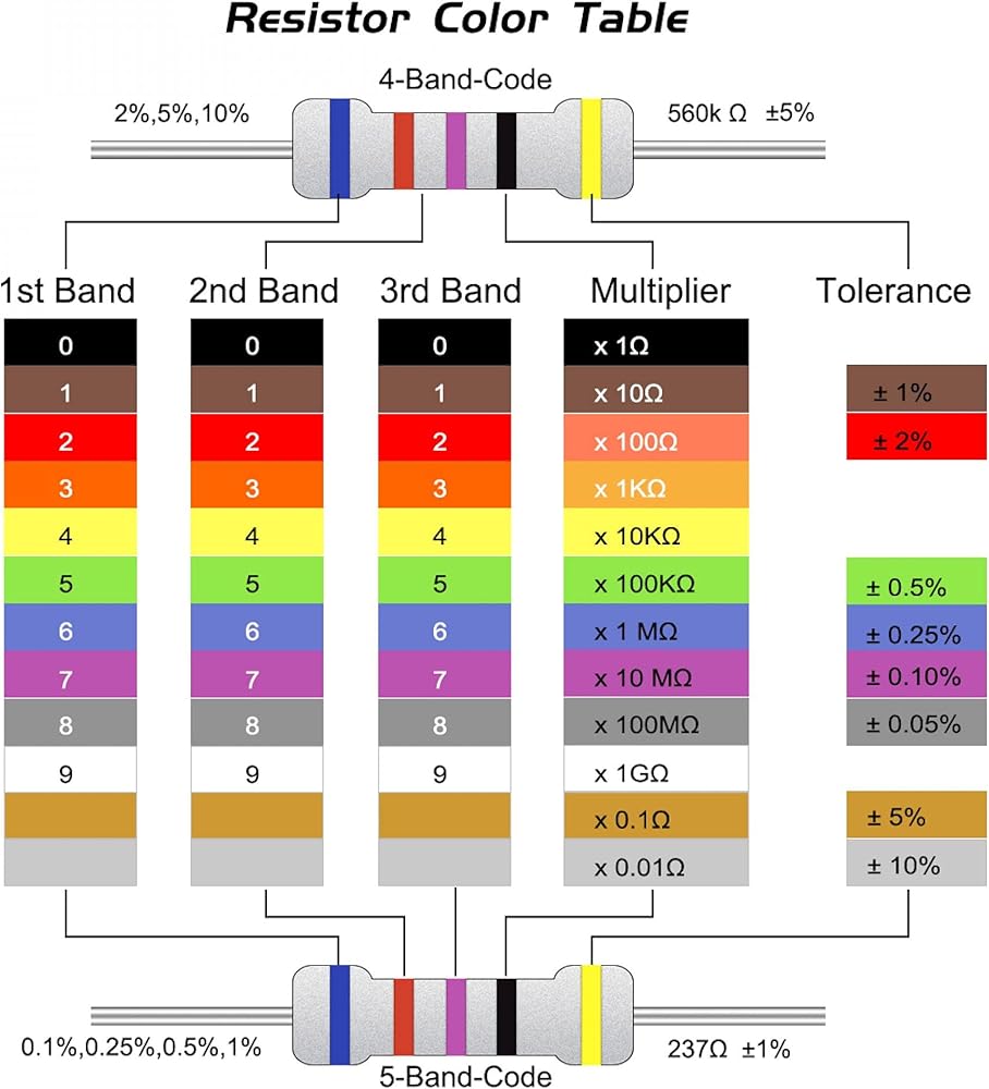 - Four bands standard EIA color code