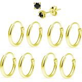 Delivered as a set of five pairs, these classic 10mm hoop earrings sterling silver and 3mm round black cubic zirconia stud earrings offer versatile wear opportunities. Great to wear together or separately for a minimalist look, enjoy three polished pairs of silver hoop endless earrings for every outfit and occasion. The hoop earrings secure with seamless endless clasps, and the studs secure with post and friction backs