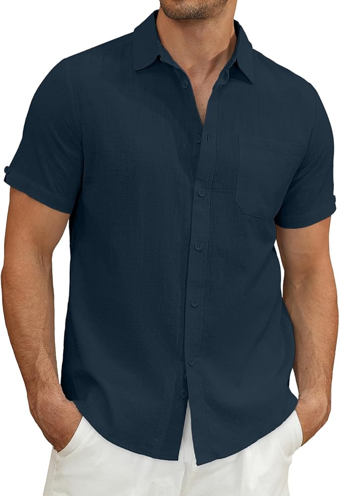 【Trueface Mens Lightweight Dress Shirts】: Mens casual button down linen shirts made of breathable cotton fabric, soft and skin friendly