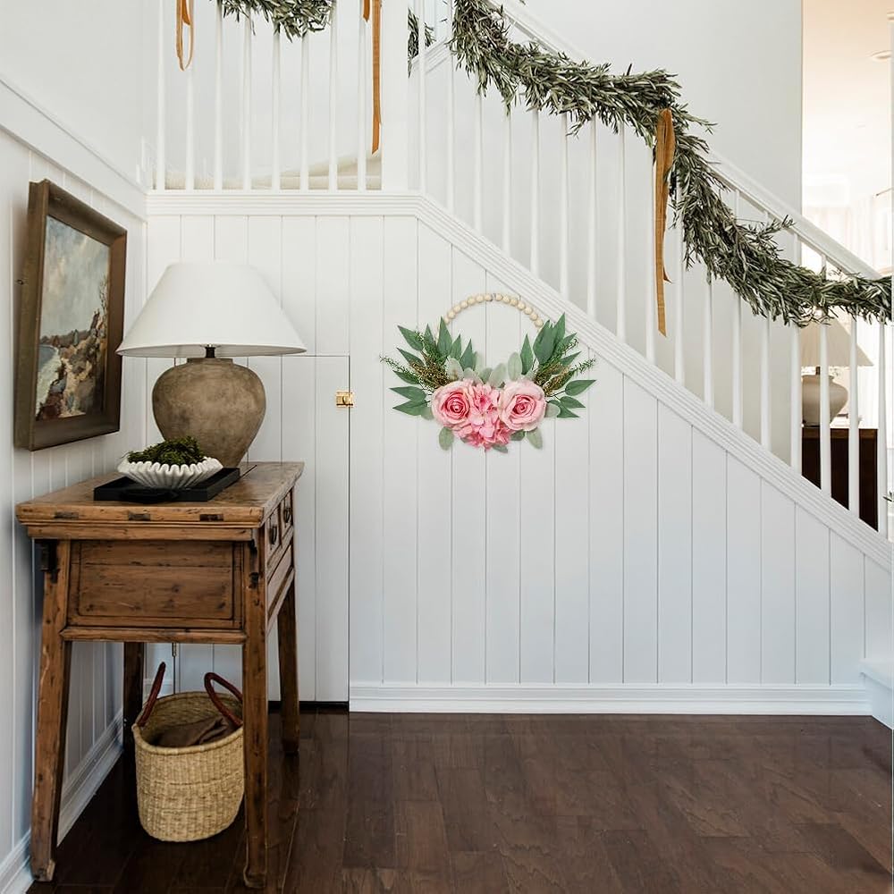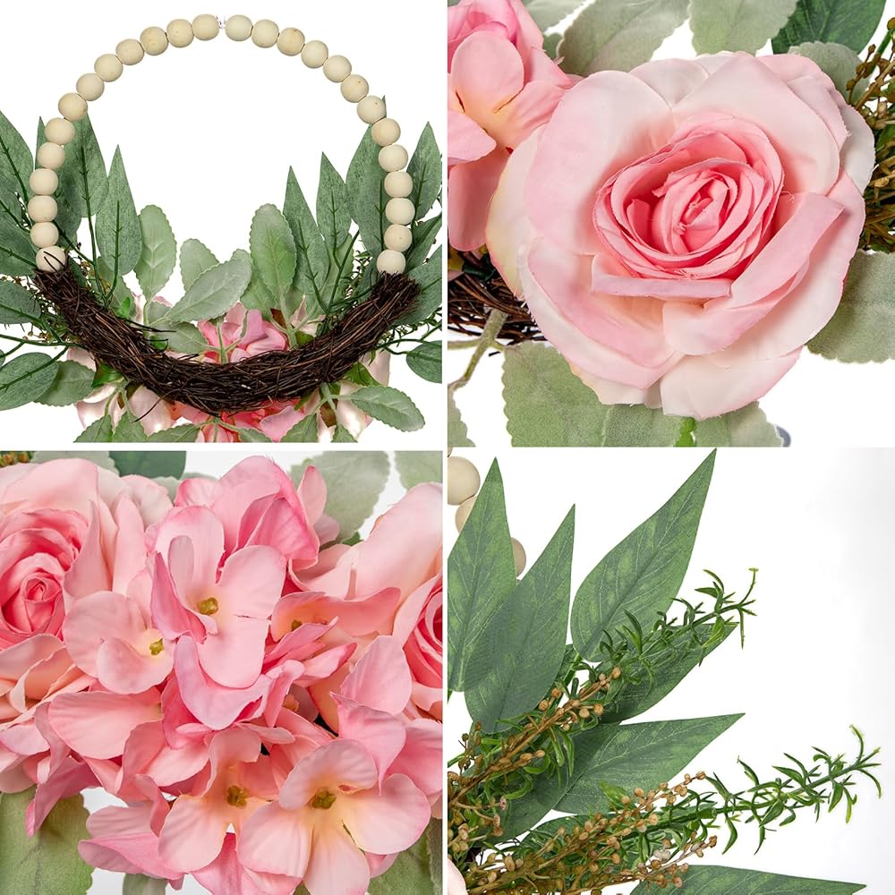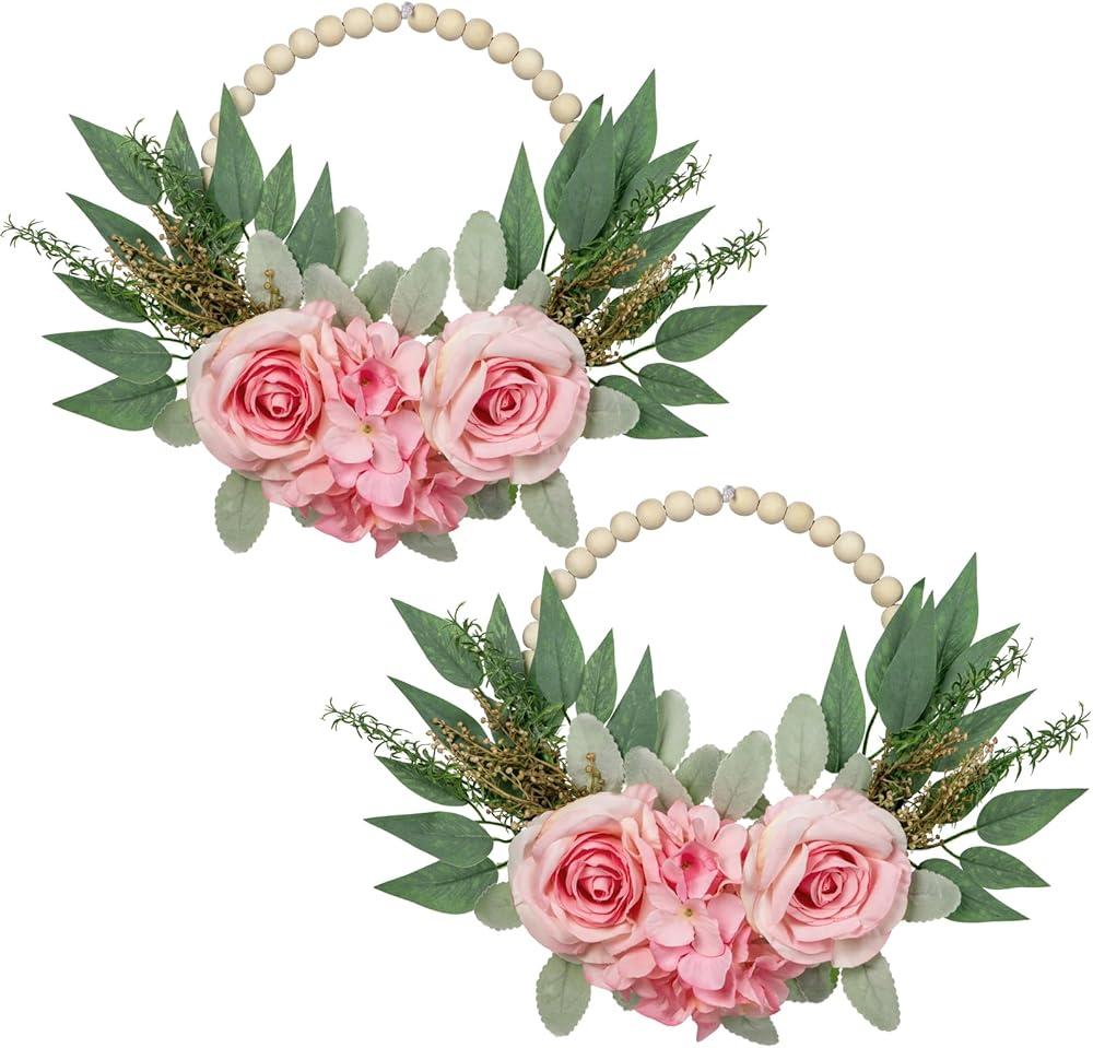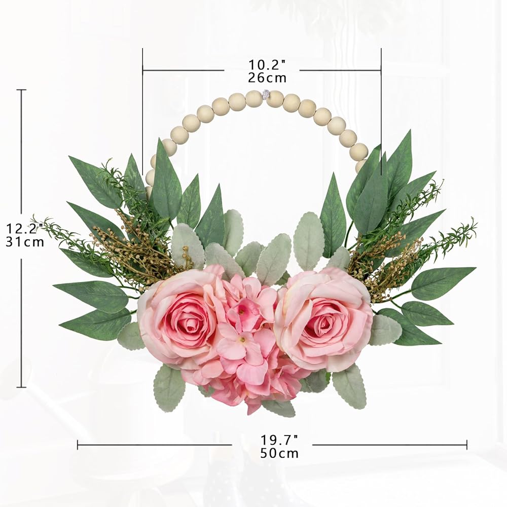 Premium Material - These wreaths are made of wooden beads into a circle and trimmed with silk flowers and polyethylene green leaves to make the decoration look more lifelike and elegant. Note: The flower might bend a bit due to shipping and packing, please adjust it if needed