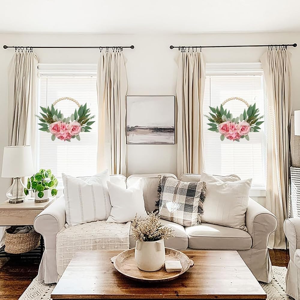 Floral Door Wreaths - You will receive two artificial floral greenary wreaths. The flower wreaths will be the unique wall/window decor ornaments for farmhouse/living room/bedroom/nursery. Natural color always adding fresh and natural atmosphere to your home