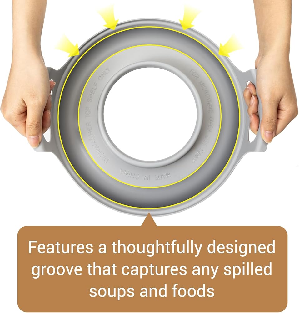 Spill and Leak Guard: Our thoughtfully designed edges feature a concave design to catch any overflow or drips, keeping your microwave clean and odor-free. Spend less time cleaning and more time enjoying your meals.