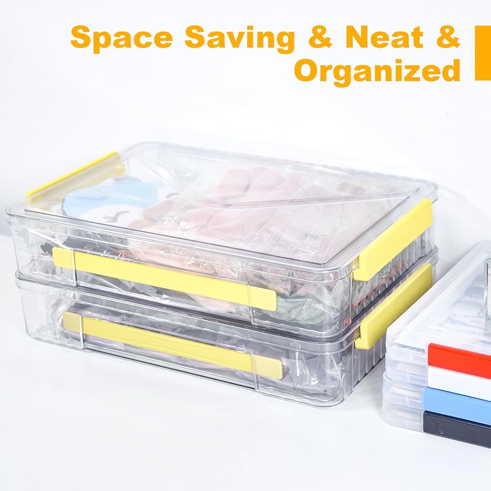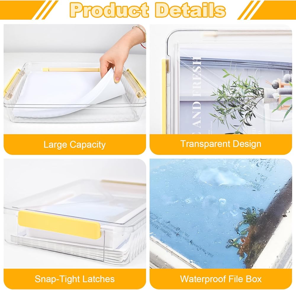 SEE-THROUGH AND STACKABLE DESIGN: The clear storage file box allow easy identify the contents from any angle without opening the box. The plastic lid with grooved design allows the storage box to stack more stably for efficient storage and space saving.