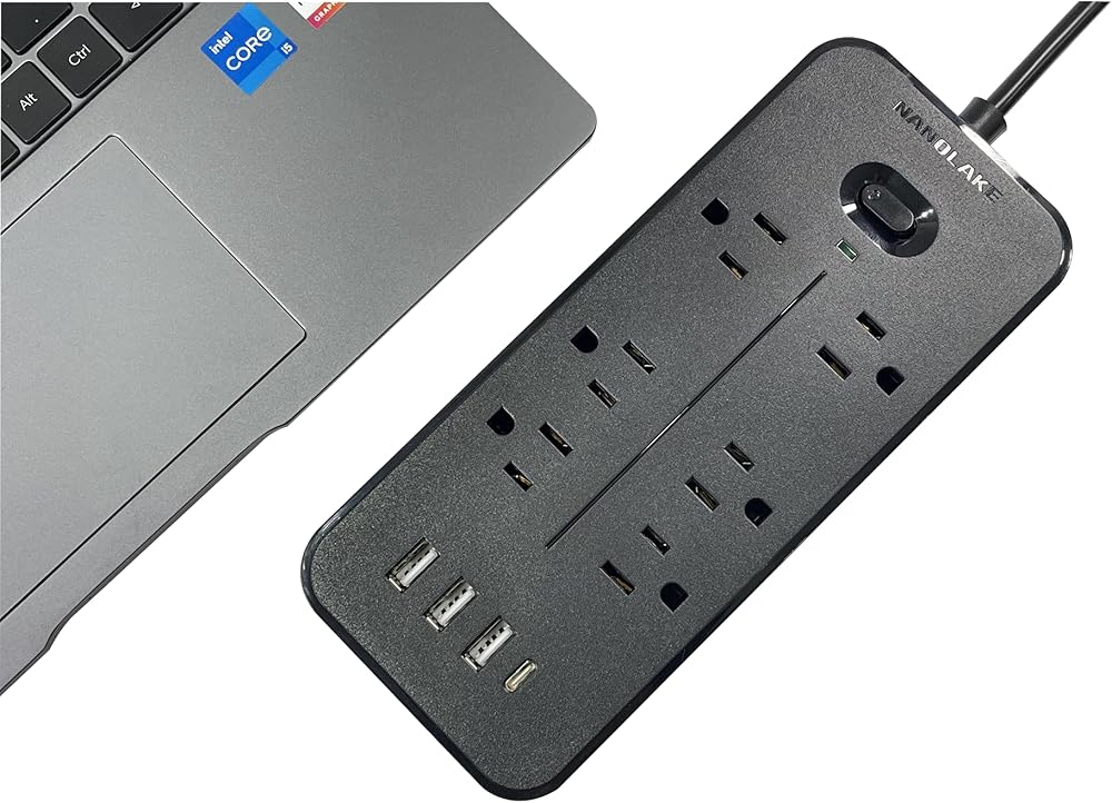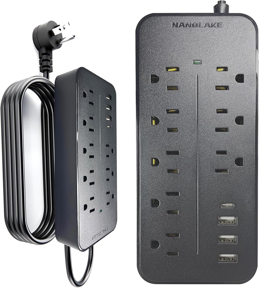 Extension Cord with USB Ports: This NANOLAKE extension cord with built-in USB and Type C ports is the ultimate surge protector power strip for all your multiple charging needs. Keep all your devices powered safely and efficiently with this multi plug surge protector.